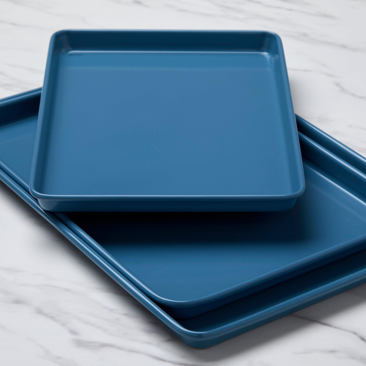 Zest Kitchen + Home produces sophisticated home products and textiles with an international sense of style and quality. This high-quality baking sheet is oven safe up to 450 degrees, features a smooth nonstick coating and is composed of carbon steel for even heat distribution. Measures 11-5/8in x 17.5in.