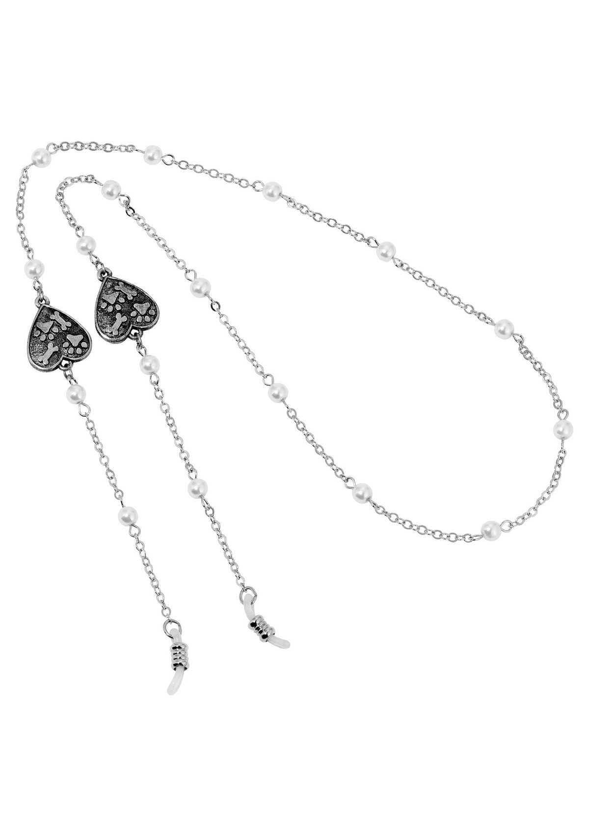 Keep your glasses stylishly within reach with this elegant necklace. Featuring smooth, round beads adorned with charming cat paws, this chic eyeglasses or sunglasses holder rests gracefully on a silver-tone chain. Avoid stretching your shirts by hanging your glasses from this fashionable accessory, ensuring both convenience and style in one beautiful piece. Length 26 in., width 13 mm.
