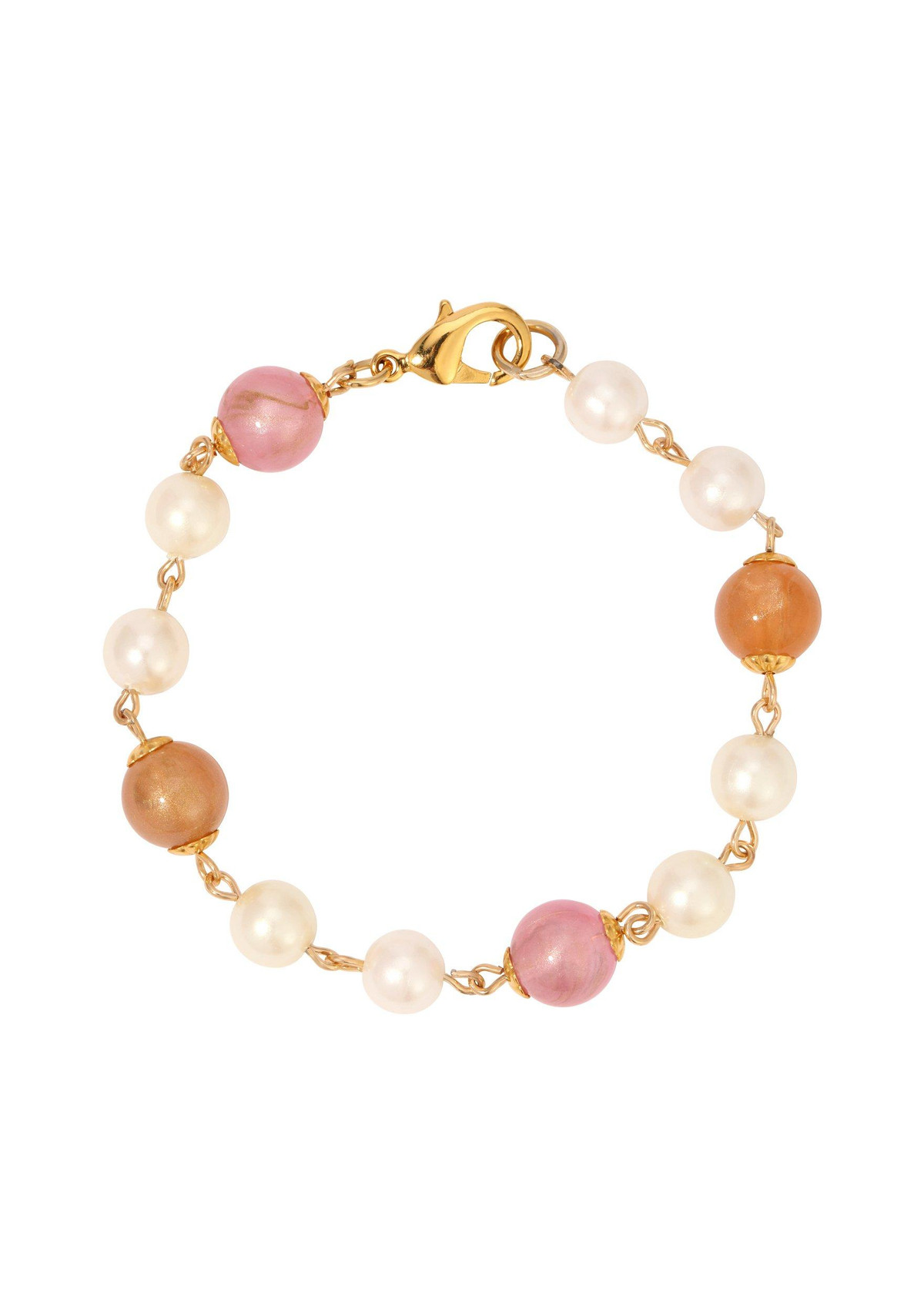 Elevate your style with the 1928 Jewelry Faux Pearl Pink Peach Beaded Bracelet. Featuring a delicate mix of blush pink, peach, and raspberry-hued faux pearls, this bracelet adds a soft, romantic touch to any outfit. Its timeless design and warm tones make it perfect for both everyday wear and special occasions. Length 7.5 in., width 10mm.