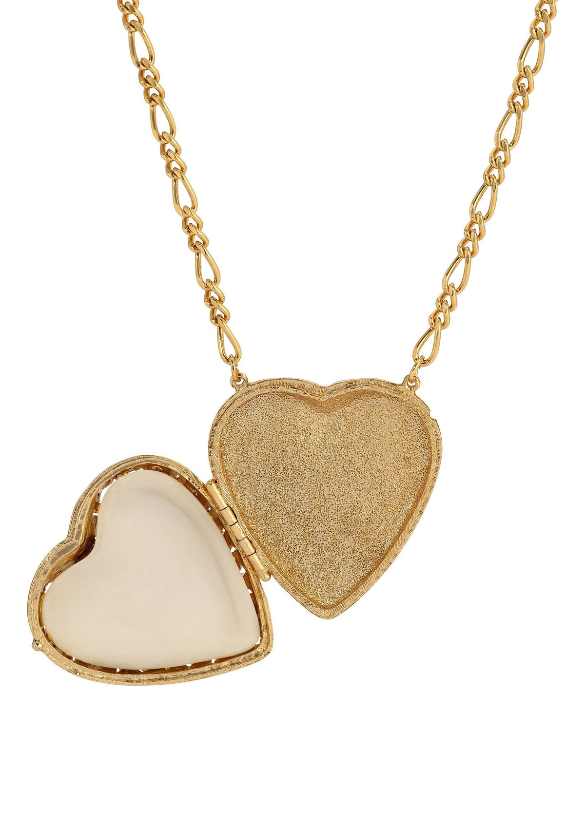 Cherish memories with this 1928 Jewelry porcelain heart locket necklace. Featuring a delicate rose design on a heart-shaped porcelain pendant and a 32 in. chain, this vintage-style keepsake is perfect for storing photos or mementos. A feminine, timeless accessory for meaningful gifting or personal wear. Length 32 in., width 44mm.