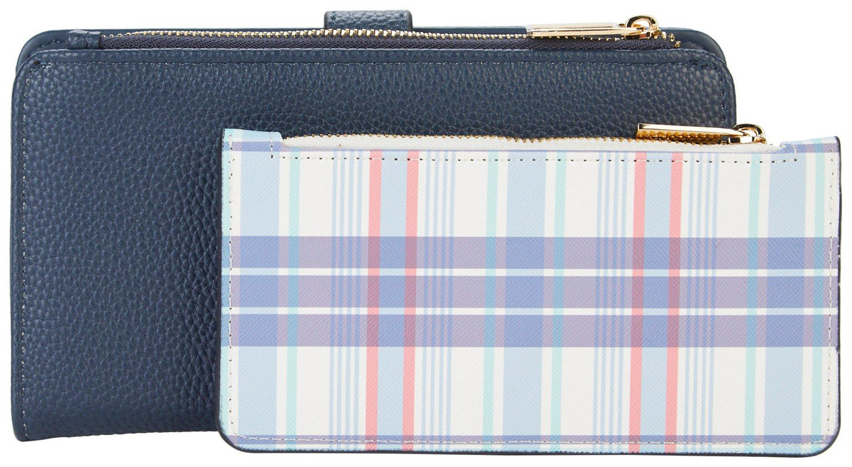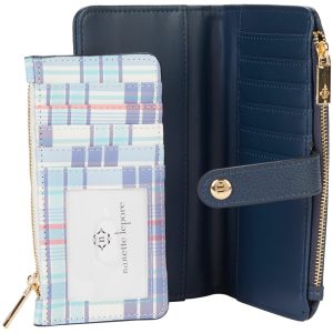 The Lili Solid Bifold Wallet features a printed credit card holder, clear ID window slot, and a sleek, compact design. Its bifold layout keeps essentials organized while adding a stylish touch. Perfect for everyday use. Measures approximately 7 inches x 4 inches.