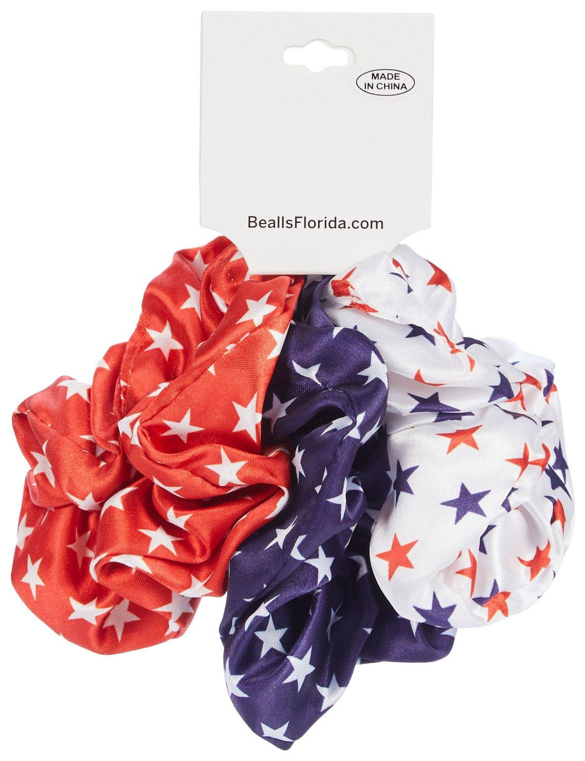 Complete your festive look with this 3-pack of Americana Star Print Scrunchies! Featuring bold red, white, and blue star patterns, these soft, stretchy scrunchies add patriotic flair to any hairstyle. Perfect for holidays, parties, or everyday fun!