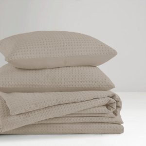 Cozy up with the 510 Design Solid Mina Waffle Weave Comforter Set. Crafted from soft microfiber with a textured waffle weave, this lightweight comforter offers breathable warmth for all seasons. Its fluffy design adds comfort and style to any bedroom.