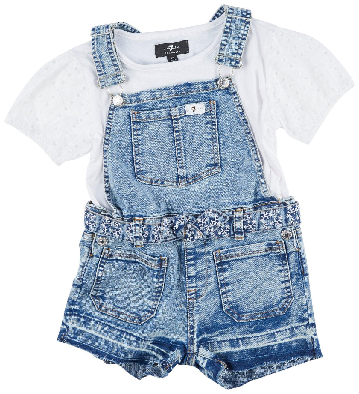 7 For All Mankind Little Girls 2-Piece Denim Overall Set