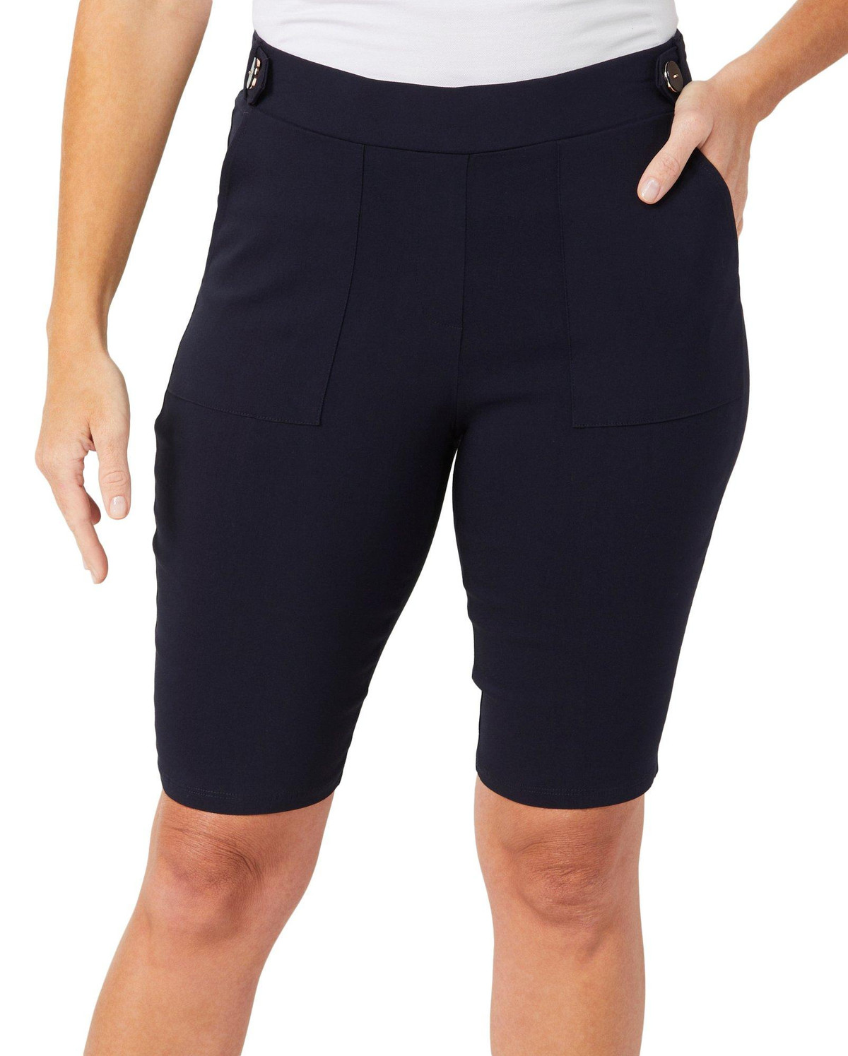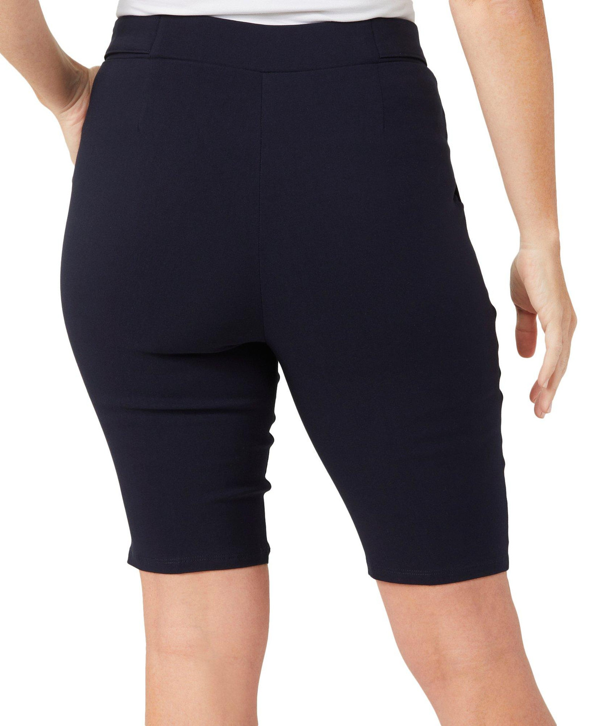 Effortlessly stylish, these Women’s 11 inch Tab Waist Bermuda Shorts feature a sleek solid color, comfortable pull-on waistband, and practical front pockets. With an 11 inch inseam, they offer a flattering fit perfect for warm weather outings. Fabrication 76% rayon, 21% nylon, 3% spandex