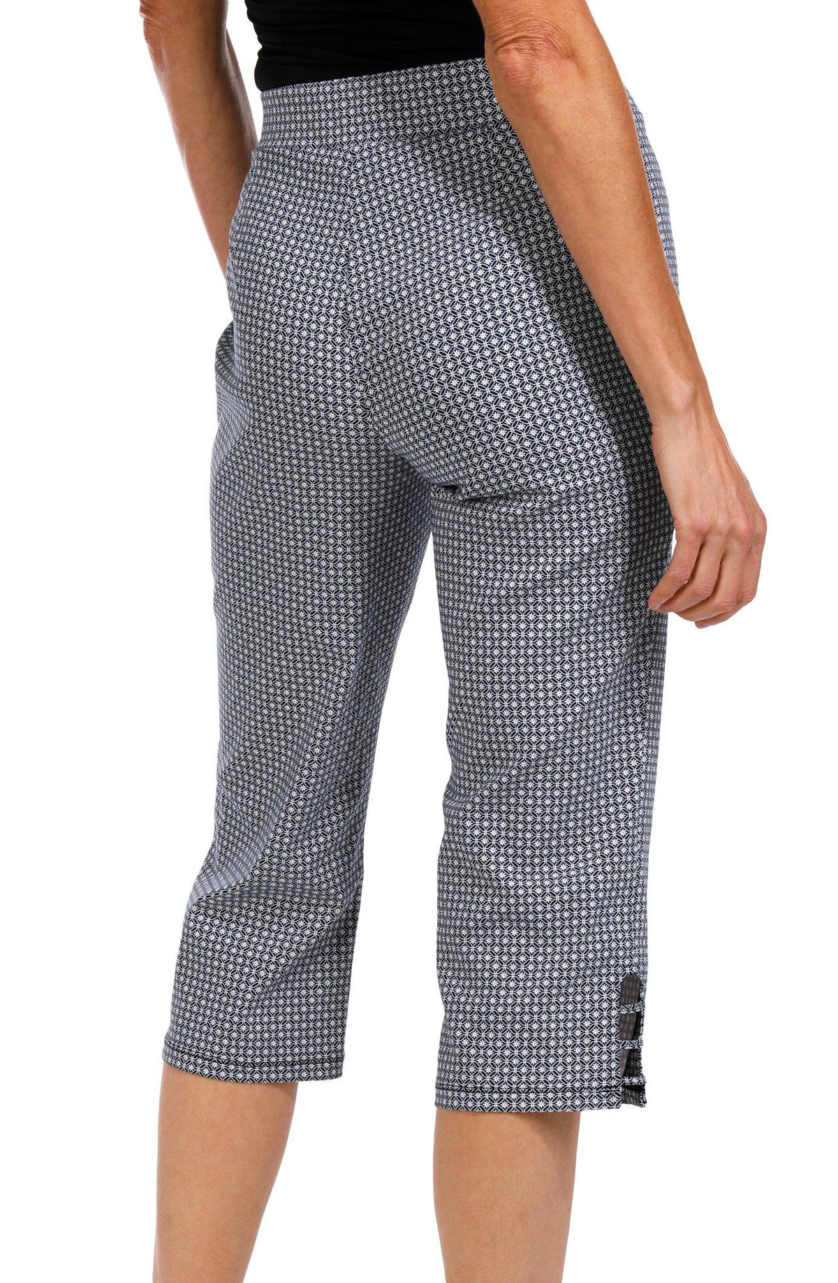 Step into easy style with these Pull On Capris, featuring a comfort waist and charming ladder hem detail. Perfect for everyday wear, they offer a flattering fit and breezy feel for warm weather days. Inseam measures approximately 21 in. Fabrication 76% rayon, 21% nylon, 3% spandex.