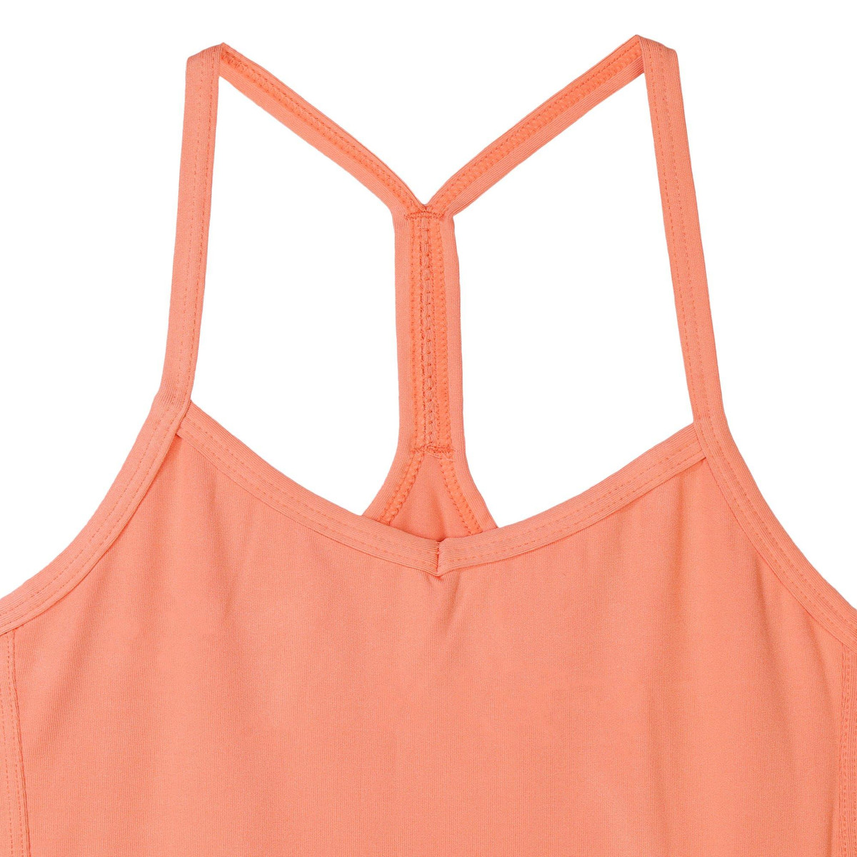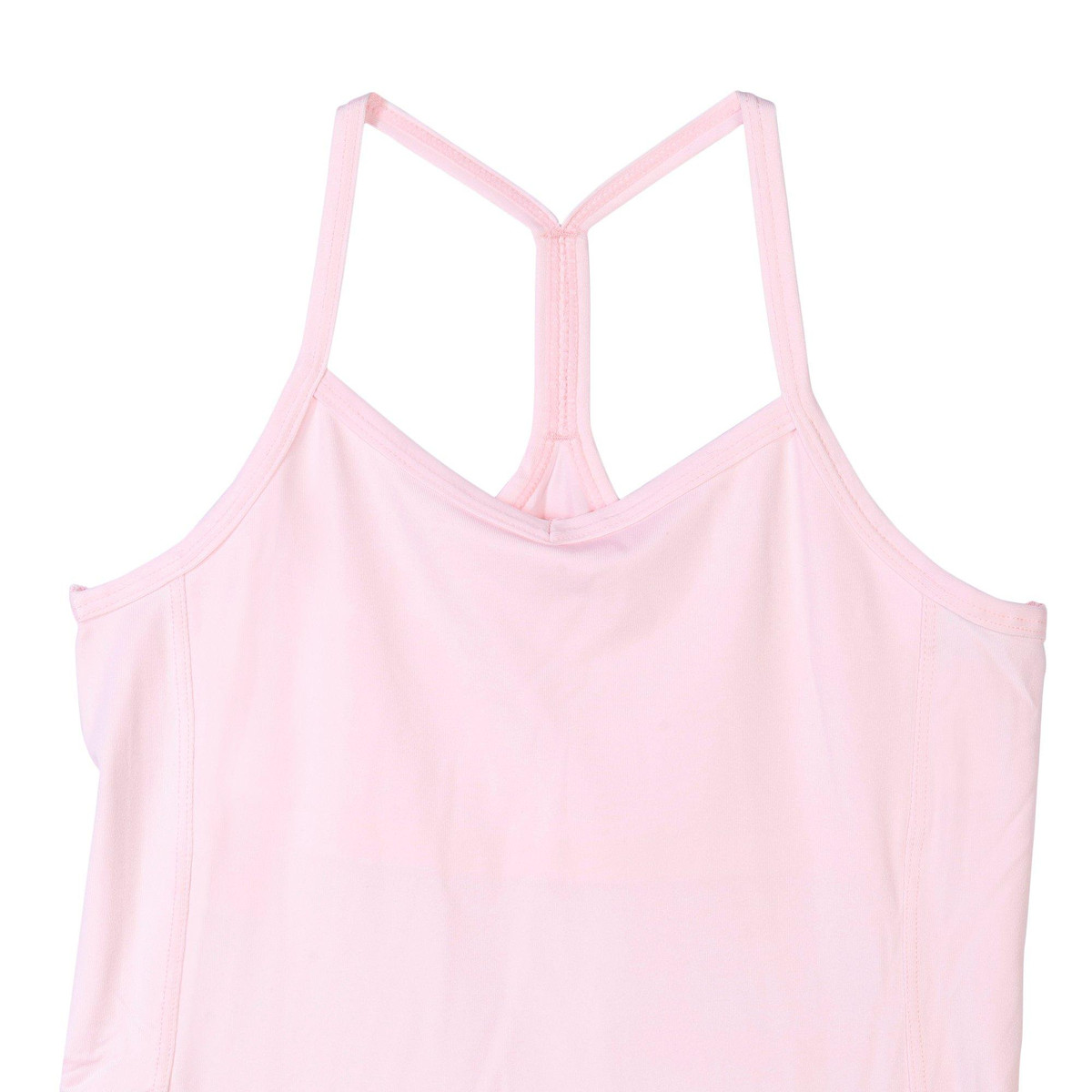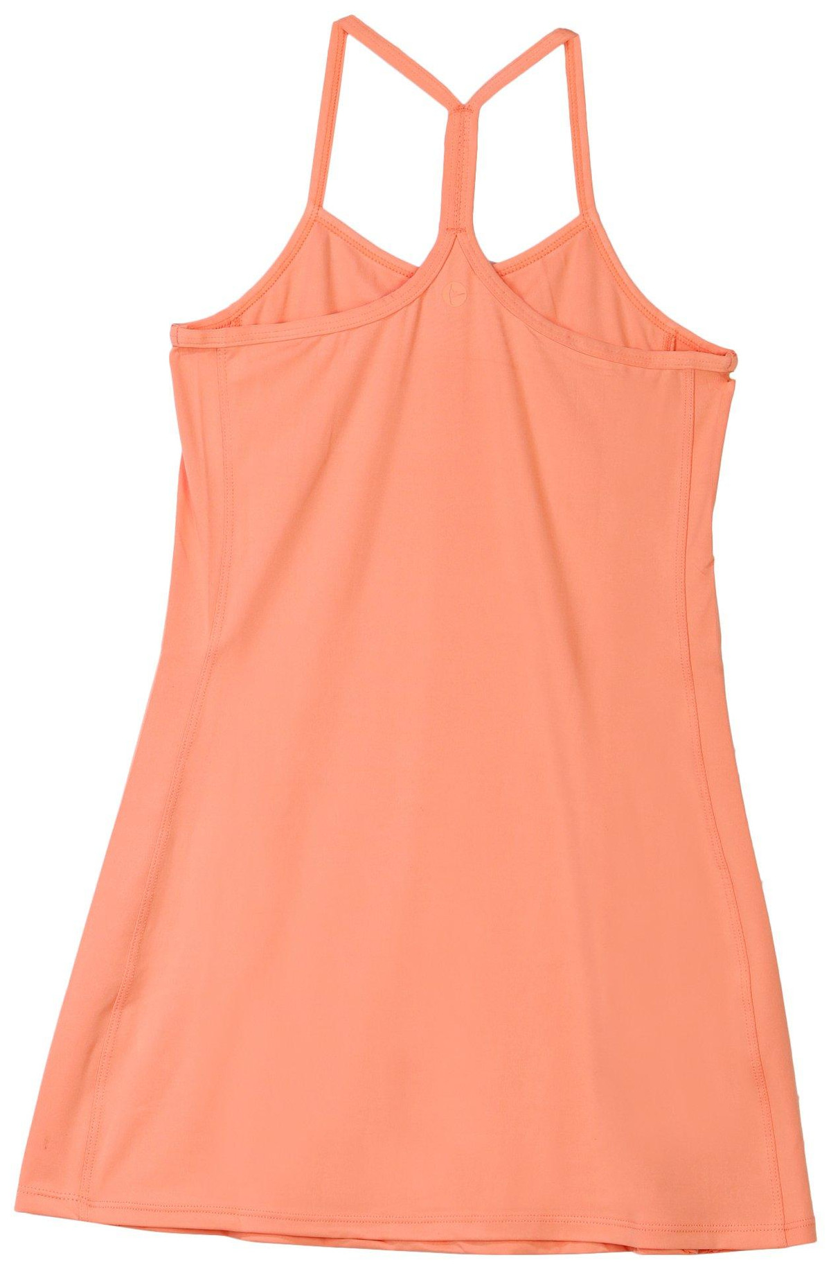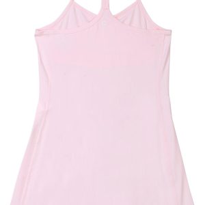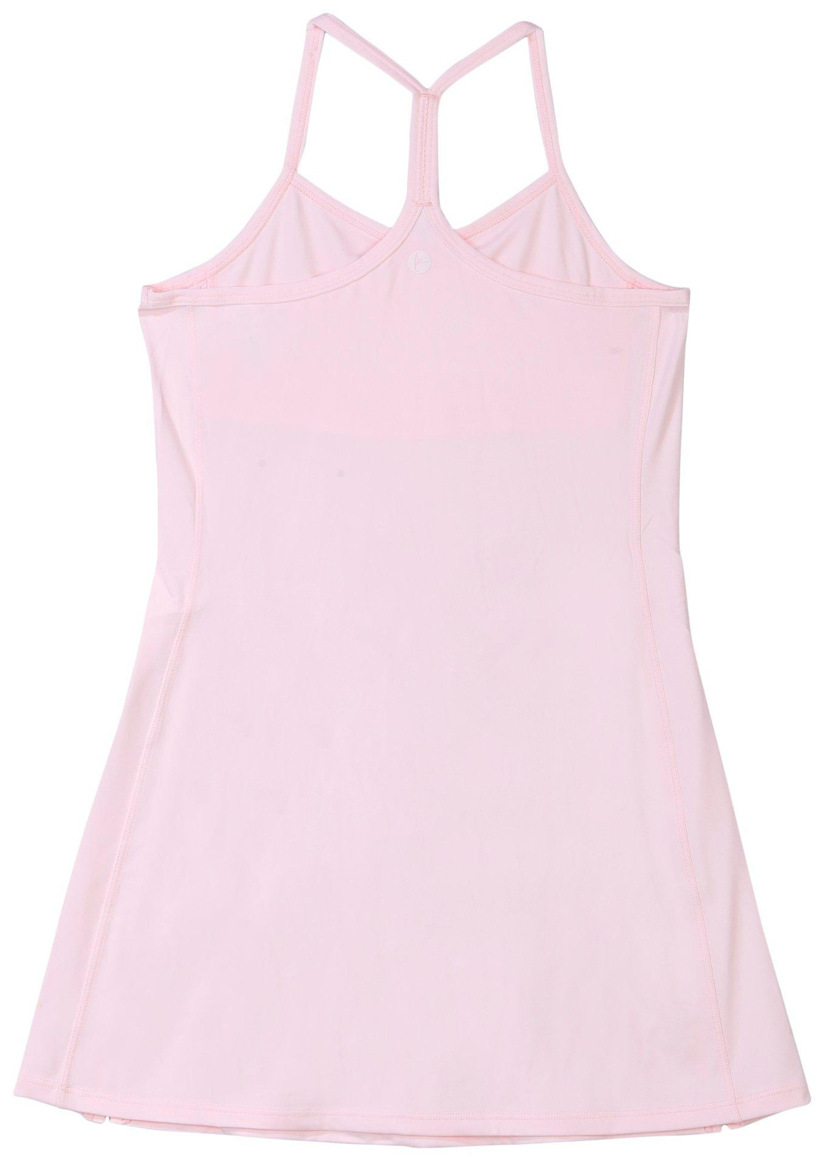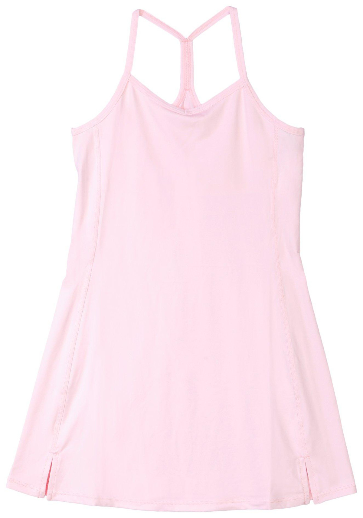 Kick up her activewear game with the Girls Active Racerback Tennis Dress. Crafted from a stretchable polyester-spandex blend and featuring bra inserts, it offers breathable support and a smooth silhouette. Designed with a racerback cut for enhanced mobility. Ideal for yoga, dance, or other high-energy routines. Machine wash cold for easy care.