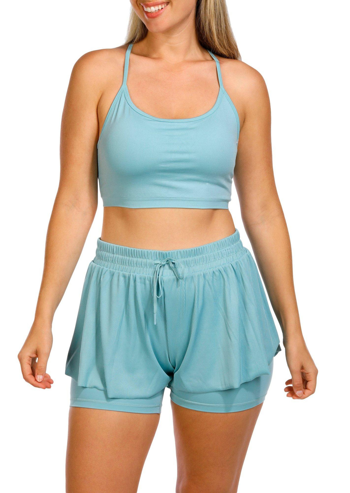 Elevate your workout style with this Women’s Active 2-Piece Shorts Set. Featuring a padded sports bra and matching shorts, both in a solid color with a ribbed texture and performance stretch fabric for comfort and support. Fabrication 92% nylon, 8% spandex
