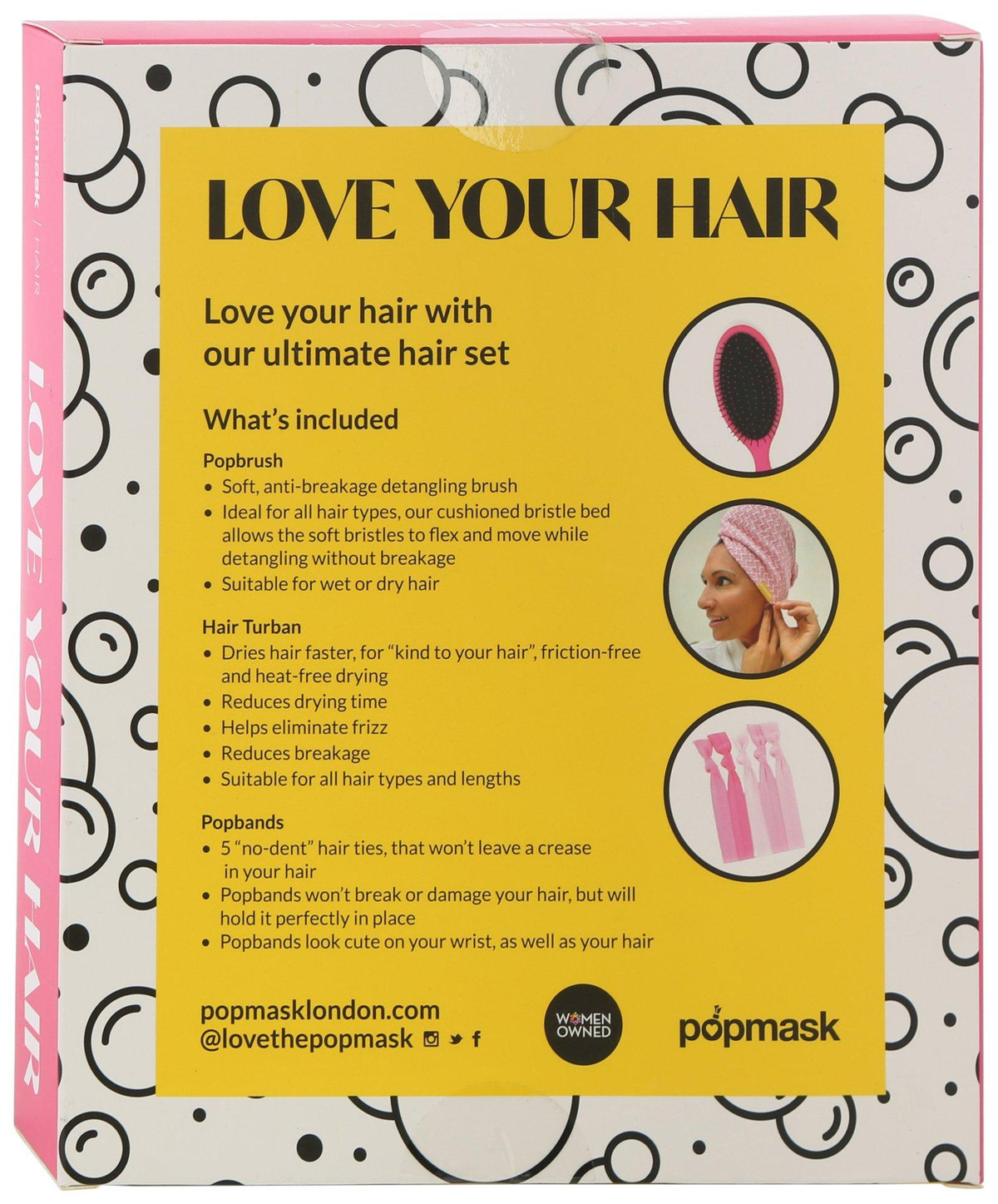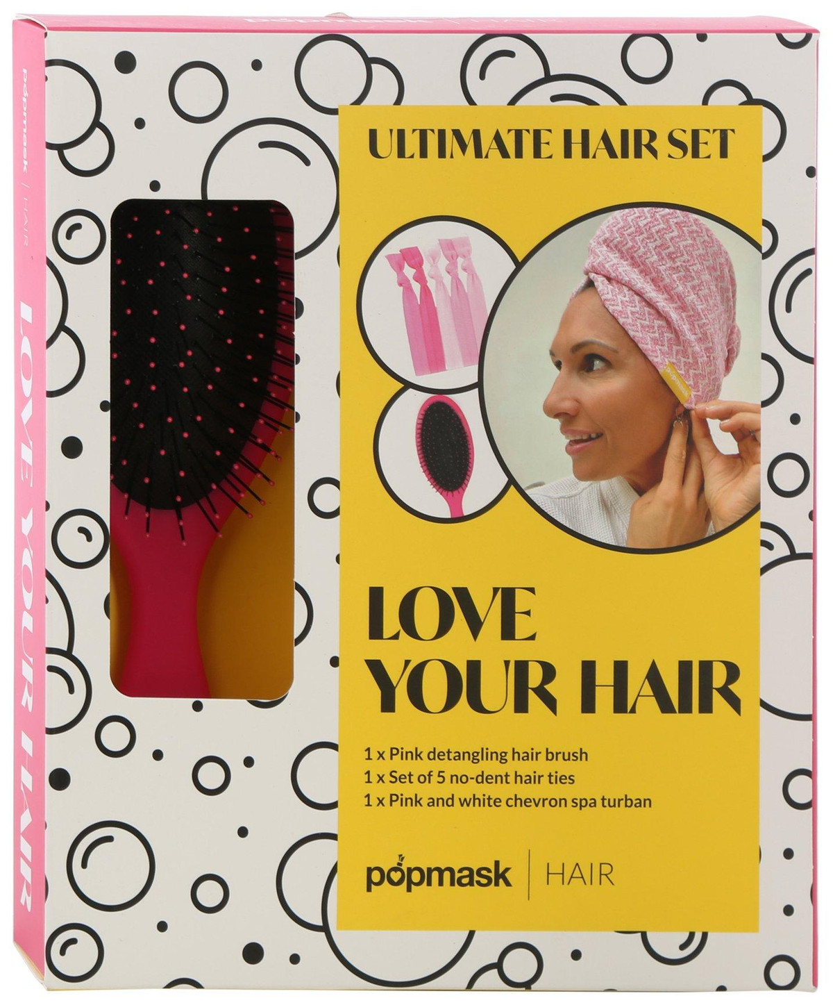 Pamper your hair with the Ultimate Hair Set, featuring a pink detangling brush, five no-dent hair ties, and a stylish pink and white chevron spa turban. This set is perfect for keeping your hair tangle-free and styled without any creases. The spa turban adds a touch of luxury to your hair care routine, making it an ideal gift or a treat for yourself. Enjoy salon-quality care at home with this comprehensive hair set!
