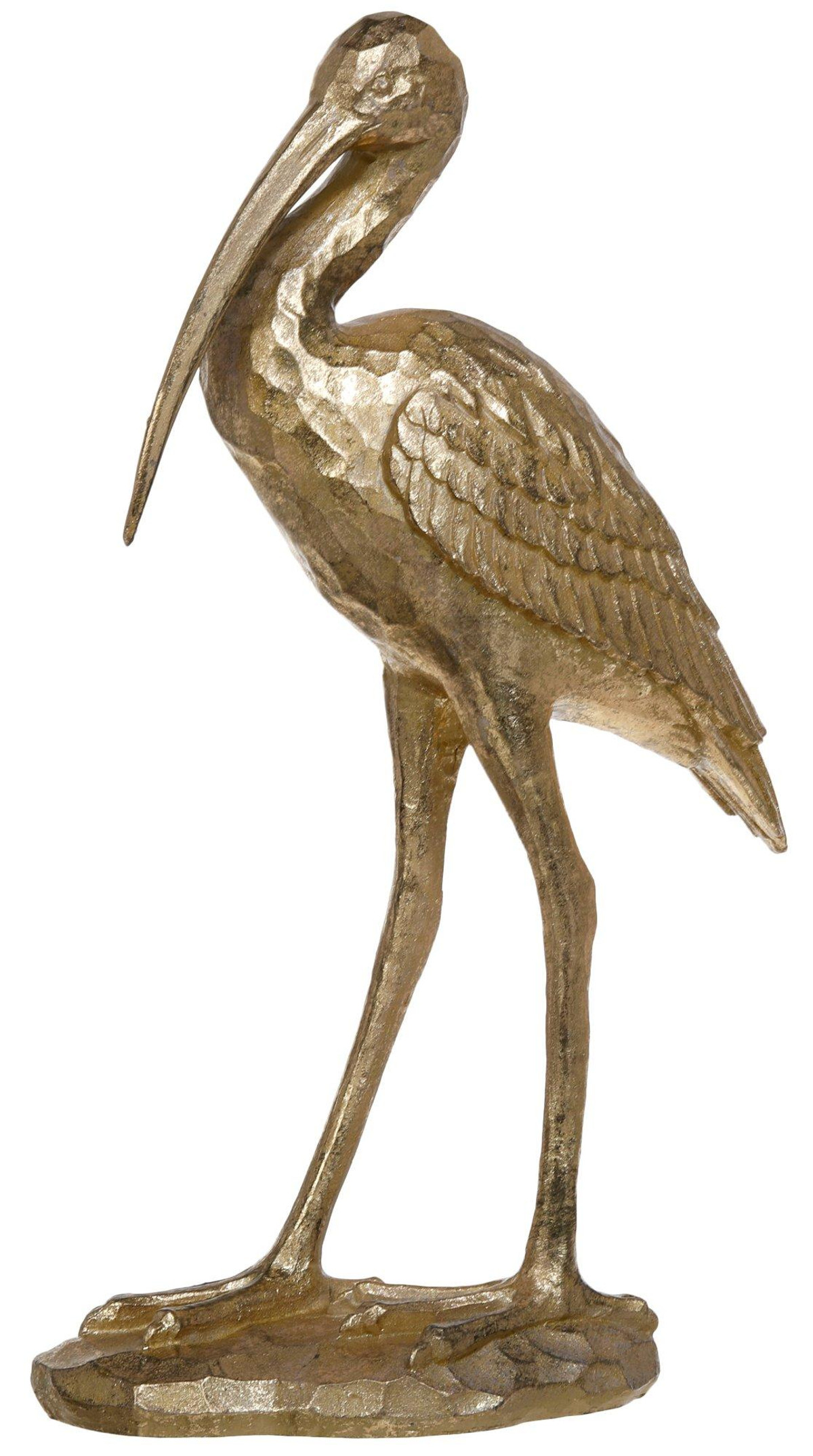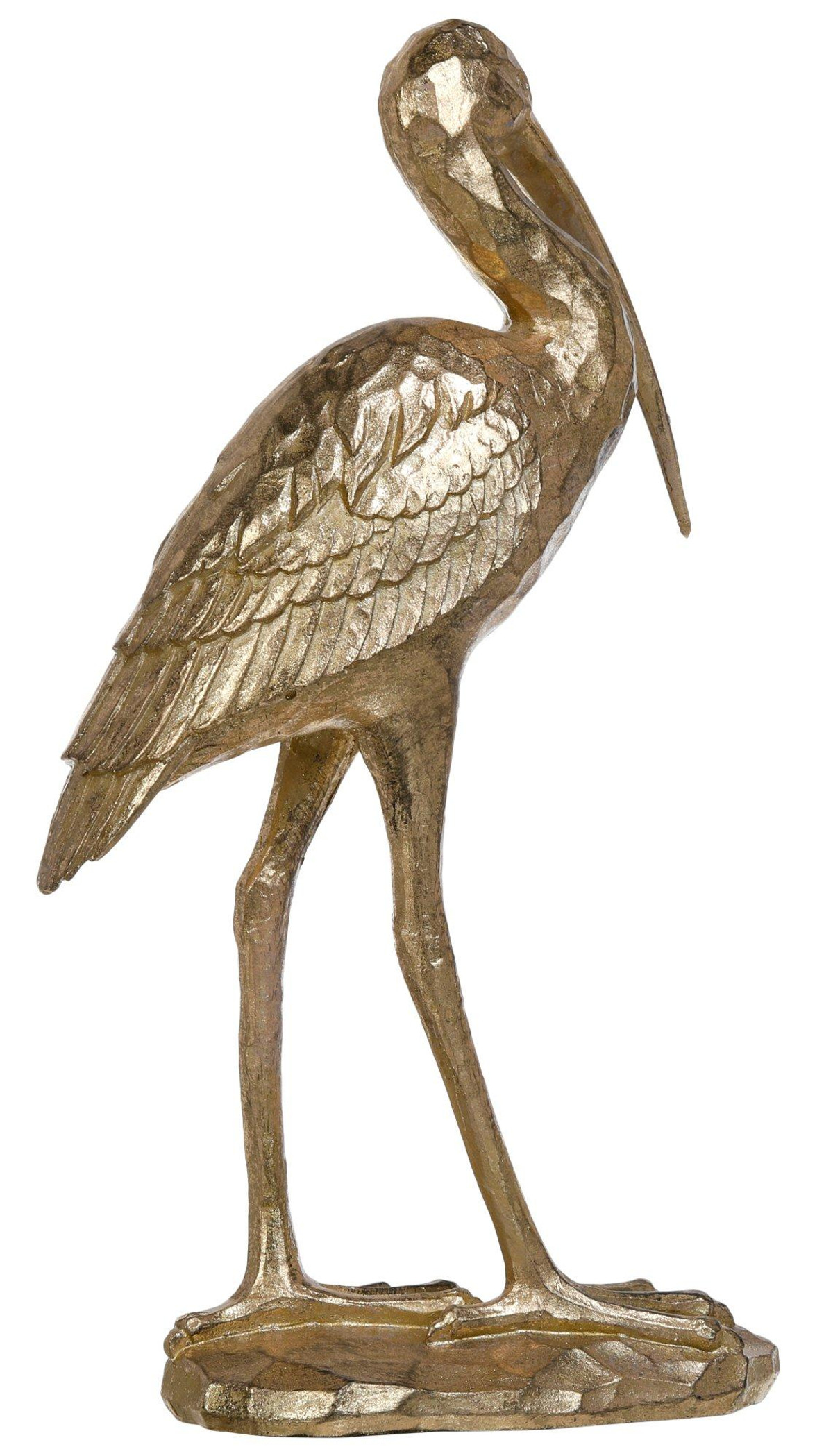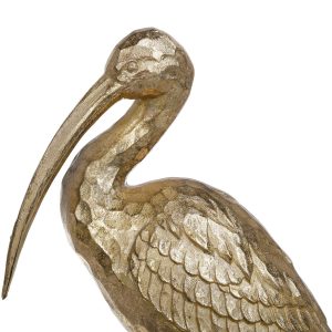 This 16 in Gold Standing Crane Home Accent is a charming addition to any coastal or nature-inspired decor. Crafted from durable resin, it features intricate detailing that captures the essence of a shorebird. Its large size makes it perfect for display on mantels or tabletops. The realistic design and stunning color add a touch of elegance to your home, making it a standout piece that brings the beauty of nature indoors. Measures approximately 16 in x 10 in x 4 in.