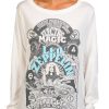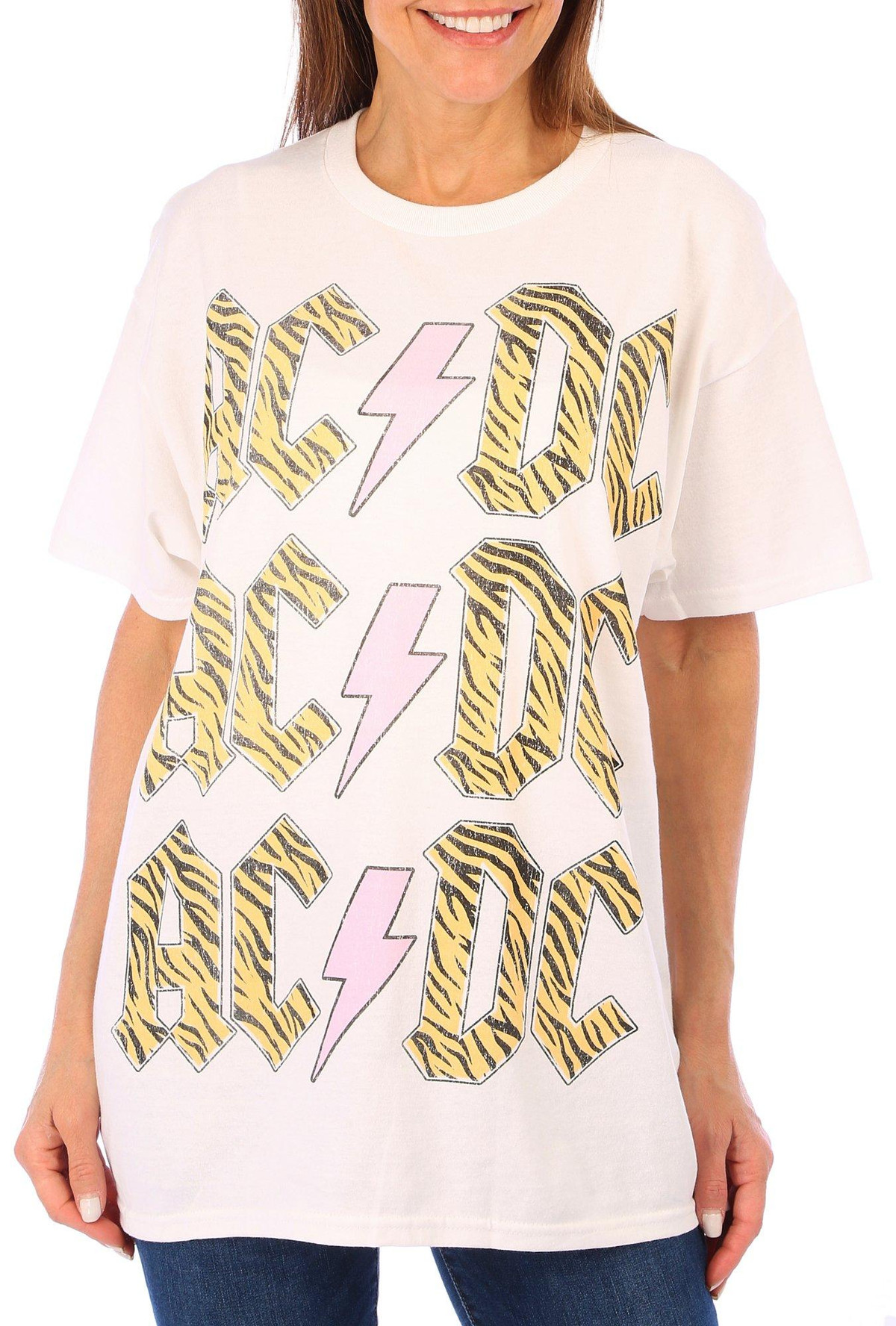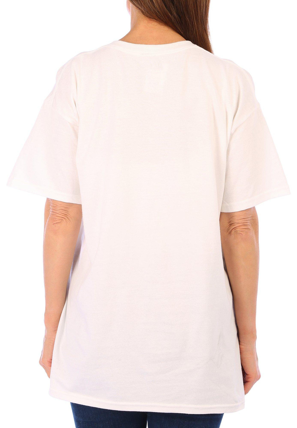 This short sleeve tee features a solid color design on soft lightweight fabric, a front screen print, and regular styling. The top length measures approximately 26 in. Fabrication 100% cotton.