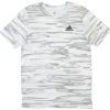 This adidas big boys crew neck tee is made from 100 percent cotton for a soft and breathable feel. It features short sleeves and a relaxed fit that moves with ease. The front showcases a bold chrome football graphic that adds a sporty edge to any outfit. Perfect for active boys who want comfort and standout style in one everyday essential.