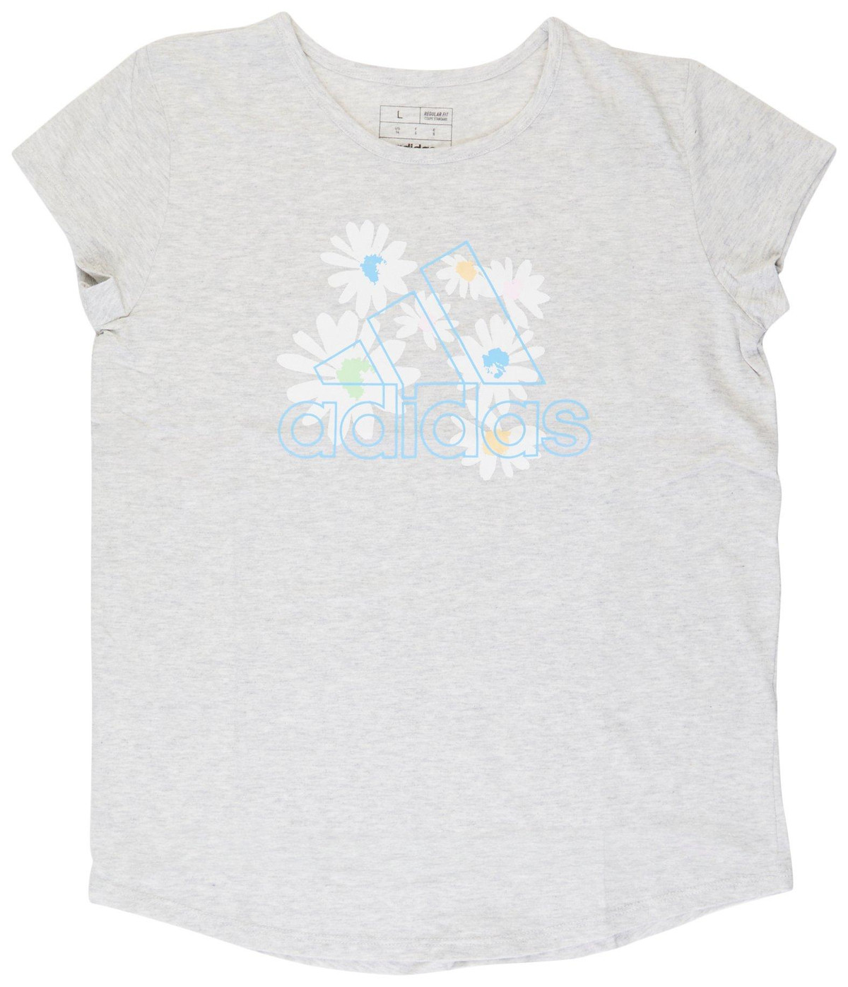 This big girls active logo tee features a floral logo screen print, classic crew neckline, and short sleeves. Made from a soft cotton-polyester blend, it is a comfy and stylish choice for everyday adventures with a sweet, sporty touch. Fabrication is 60% cotton, 40% polyester