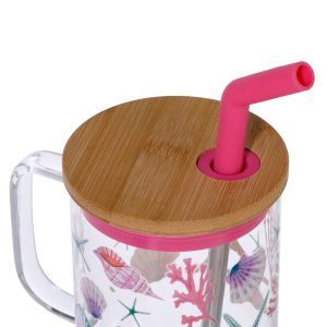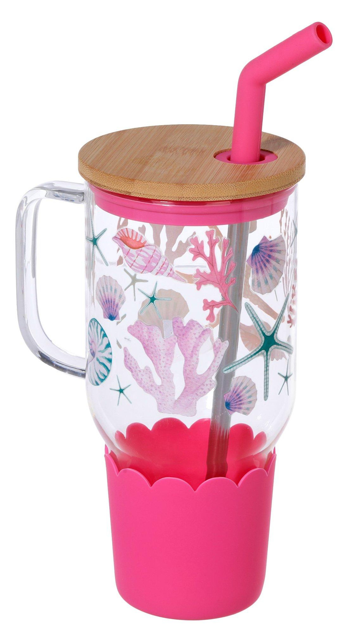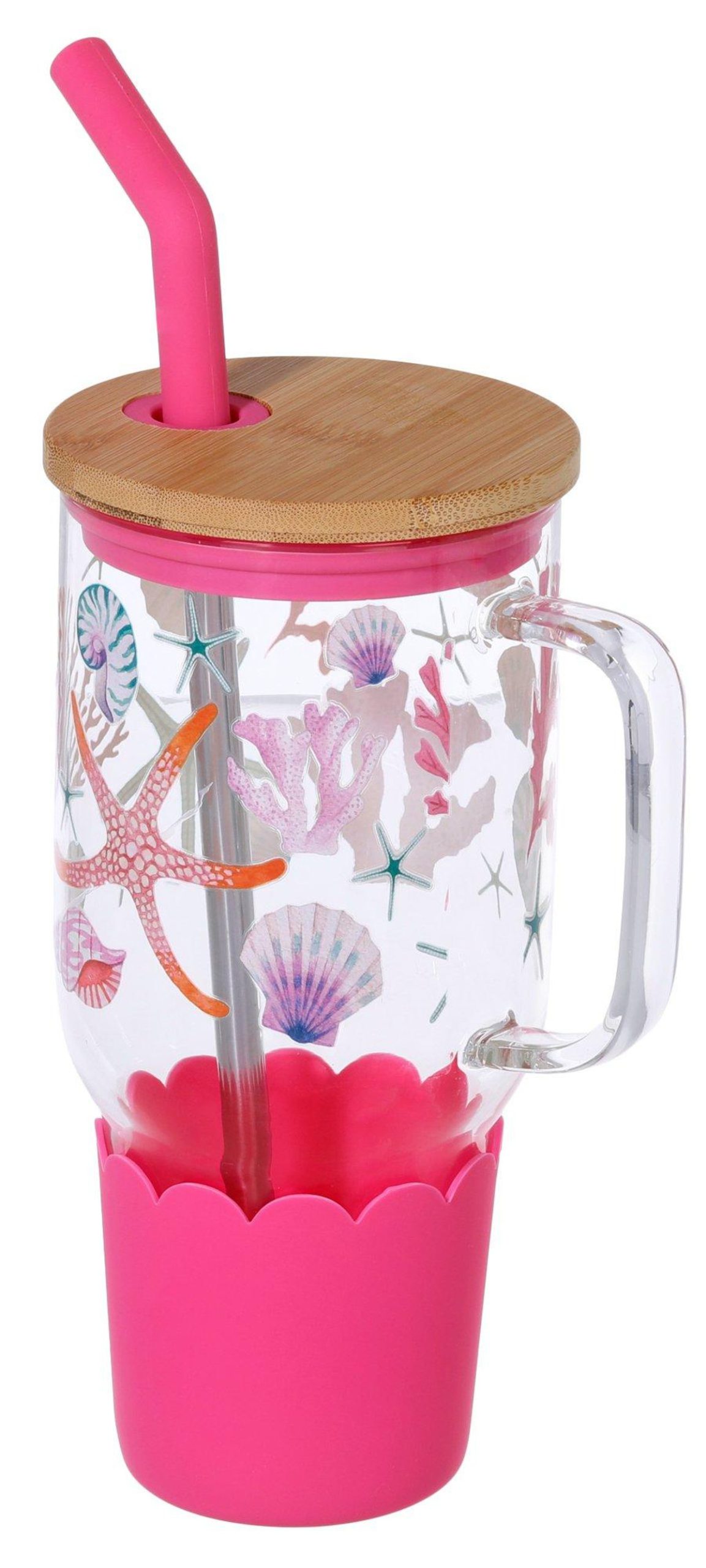 Sip in style with this 37 ounce seashell print tumbler featuring ecofriendly glass, a reusable straw, and a protective silicone sleeve. Perfect for beach days or daily hydration, this tumbler combines coastal charm with sustainable function.