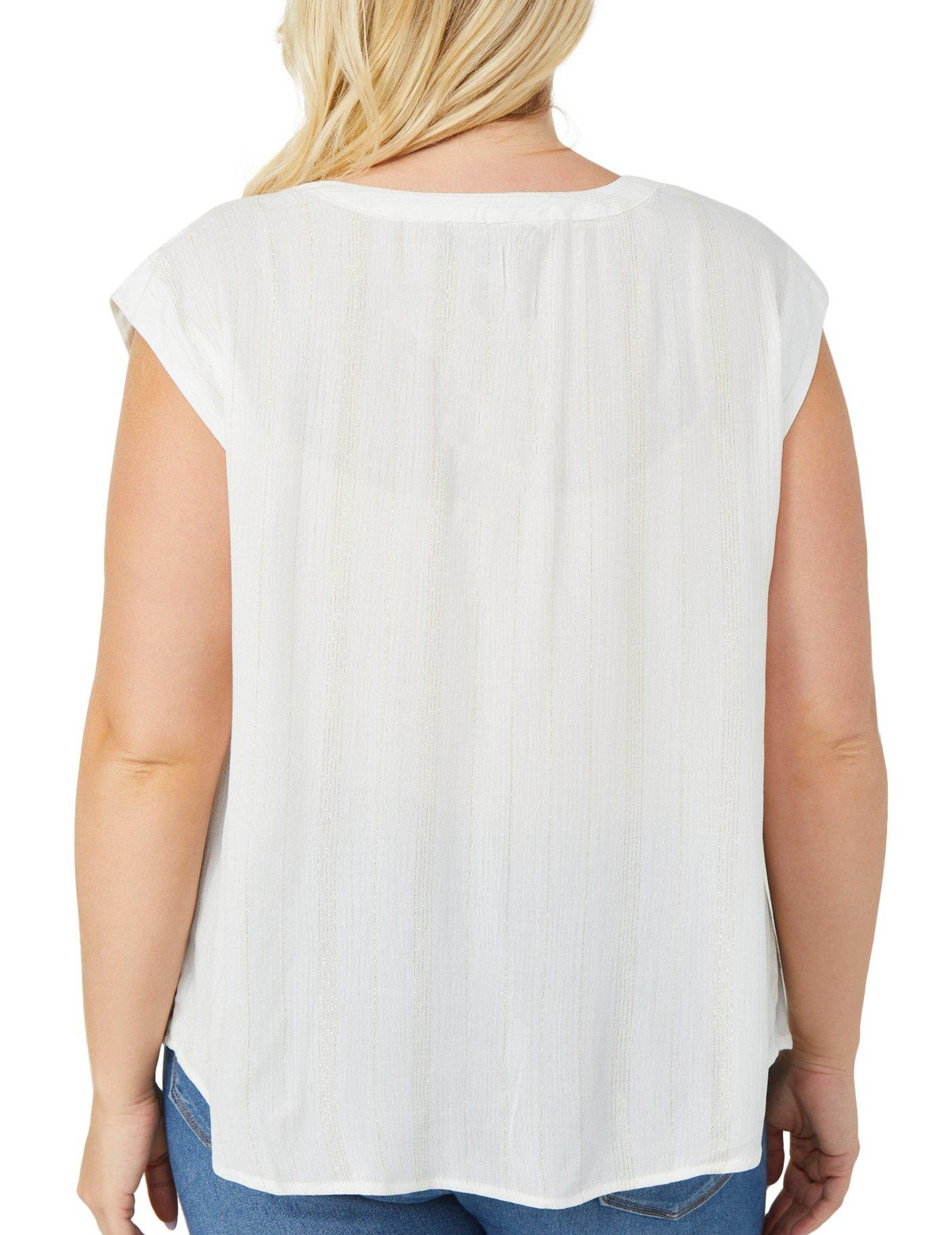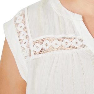 This Sleeveless Top blends elegance and shine with metallic accents and delicate lace details. Finished with a button placket for a polished touch, it’s perfect for warm days when you want comfort with a hint of sophistication.