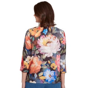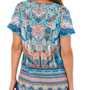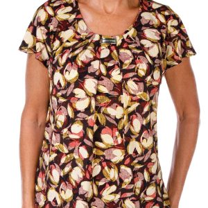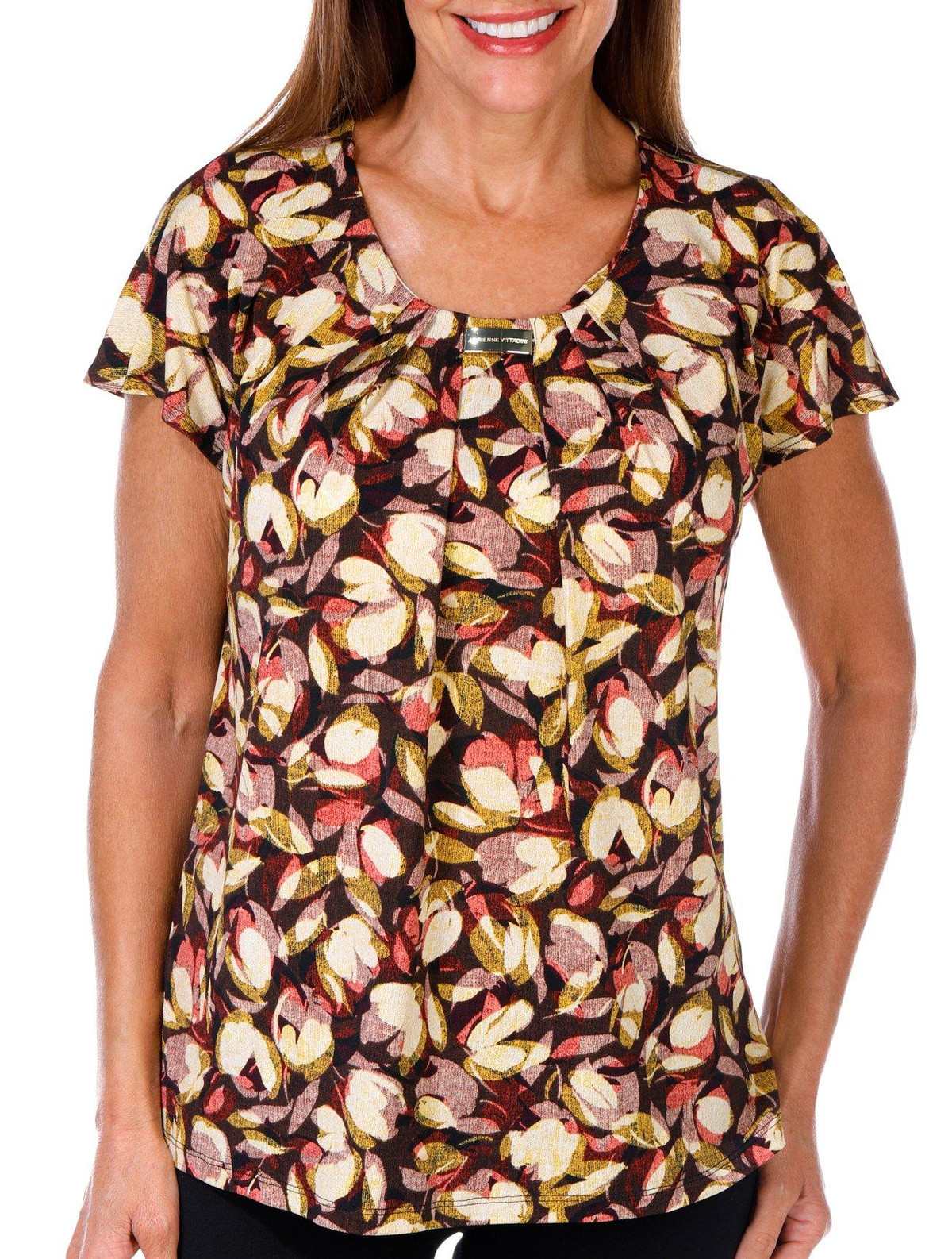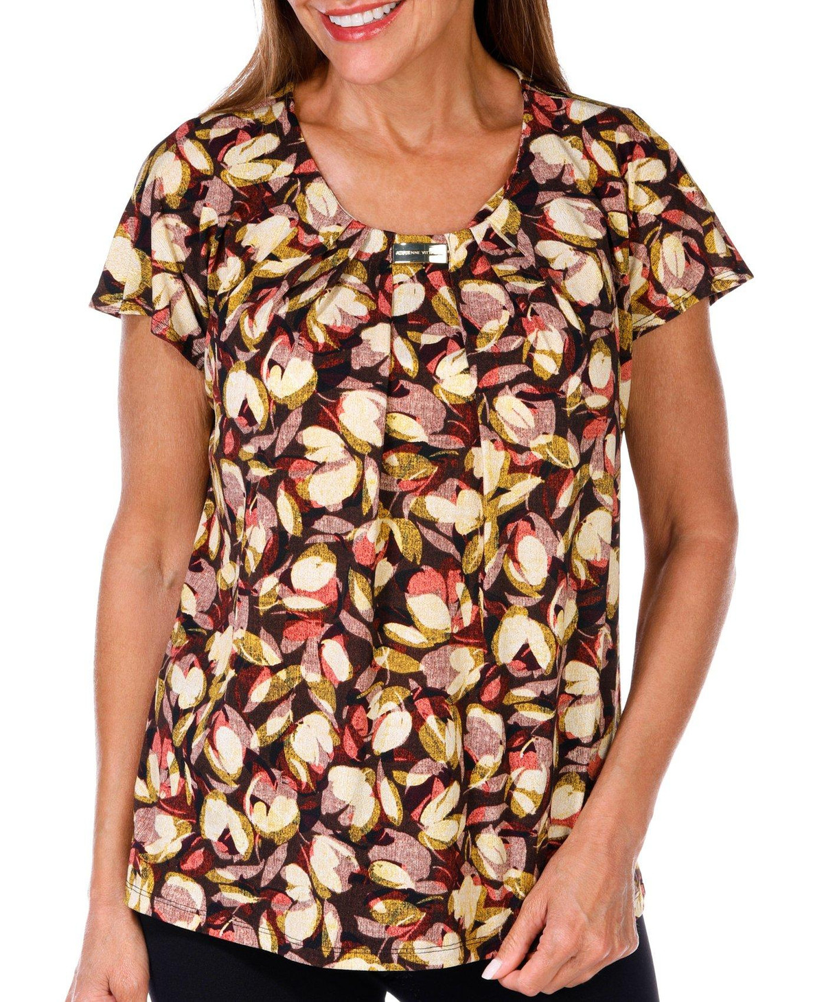 This womens top features a classic jewel neckline and soft, stretchy fabric, making it perfect for both dressing up or keeping it casual. Fabrication is 95% polyester and 5% spandex.