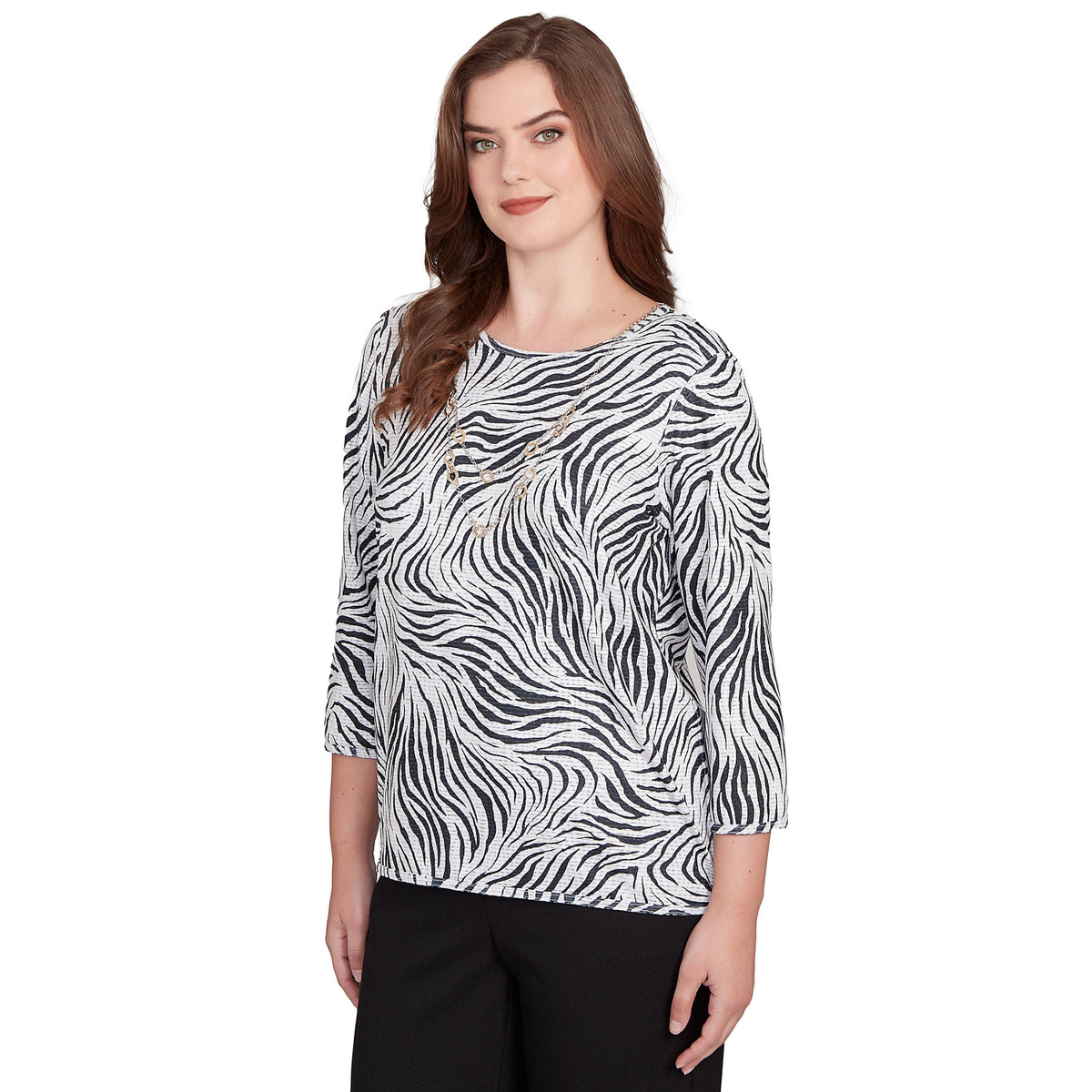 Alfred Dunner Womens Reversible Paisley 3/4 Sleeve Top