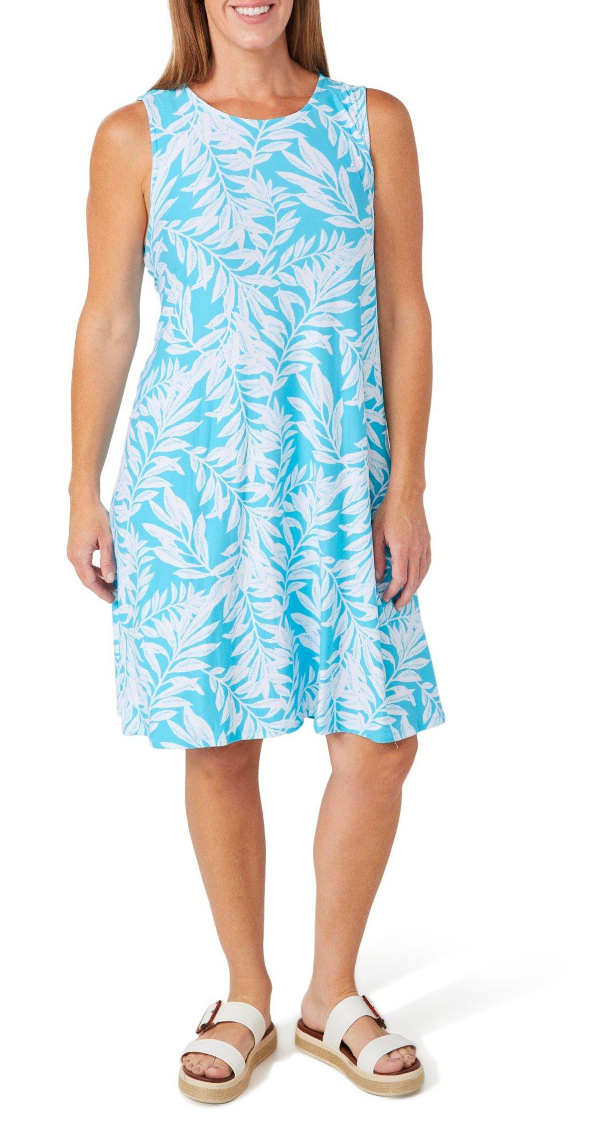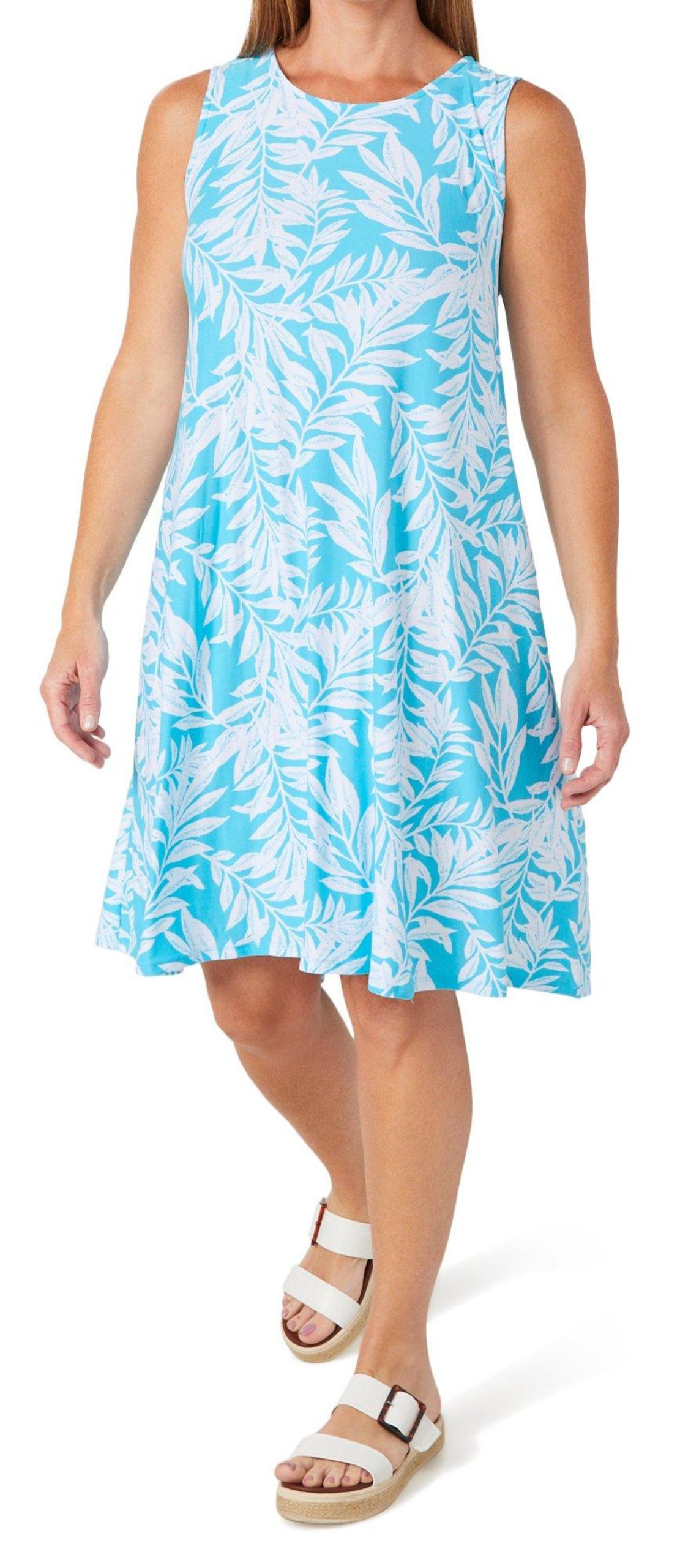 The Women’s Sleeveless Print Swing Dress combines comfort and style with its flowy silhouette and vibrant print. Designed to flatter every body type, this dress offers a relaxed fit and soft fabric that moves with you. Perfect for warm weather, its ideal for casual outings or dressing up for special occasions. Fabrication is 92% polyester, 8% spandex.