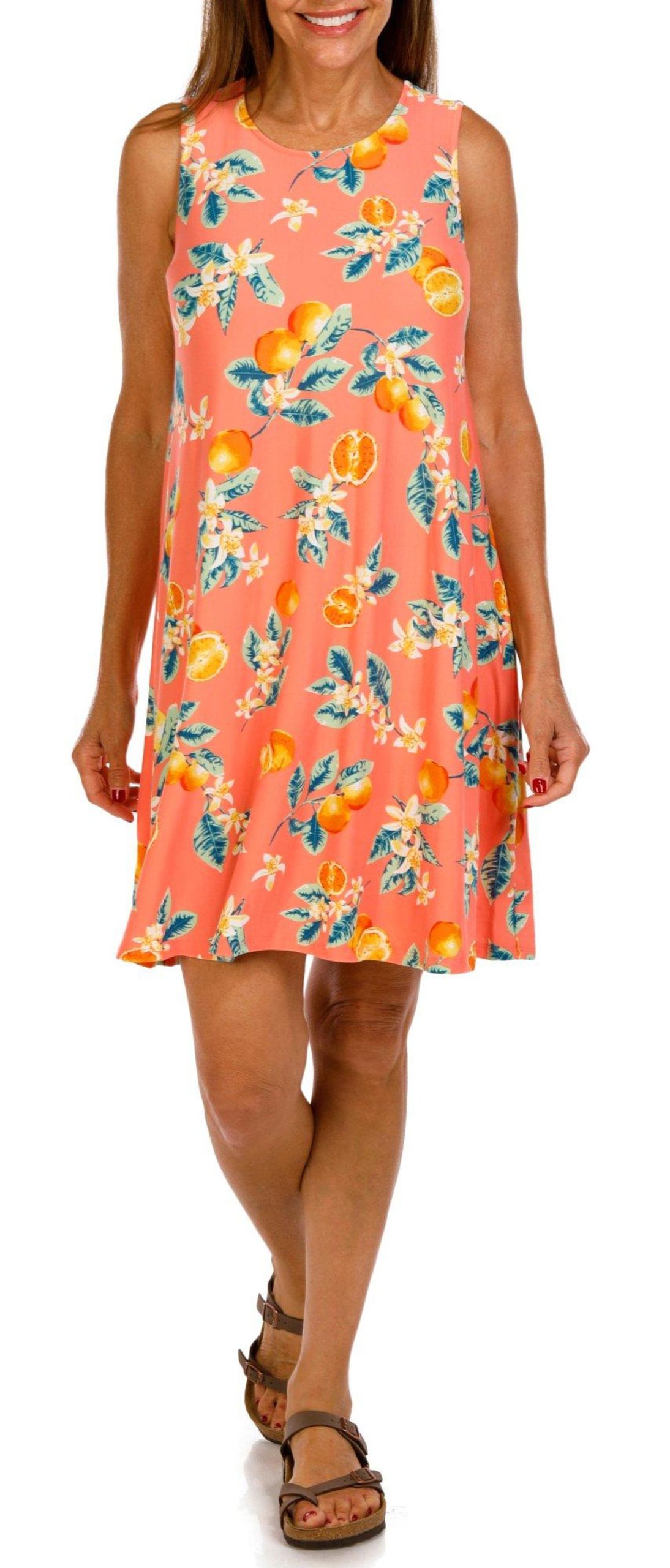 The Women’s Sleeveless Yummy Swing Dress combines comfort and style with its flowy silhouette and charming print. Designed to flatter every body type, this dress offers a relaxed fit and soft fabric that moves with you. Perfect for warm weather, it is ideal for casual outings or dressing up for special occasions. Measures approximately 36 in. Fabrication is 92% polyester, 8% spandex.