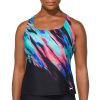 Get ready for another exciting beach adventure in this stylish Tiered Tankini Top! It features a vibrant print design, a scoop neckline, adjustable straps, sewn in cups, and a flattering 3 tier ruffle detail. Fabrication 82% nylon, 18% spandex.