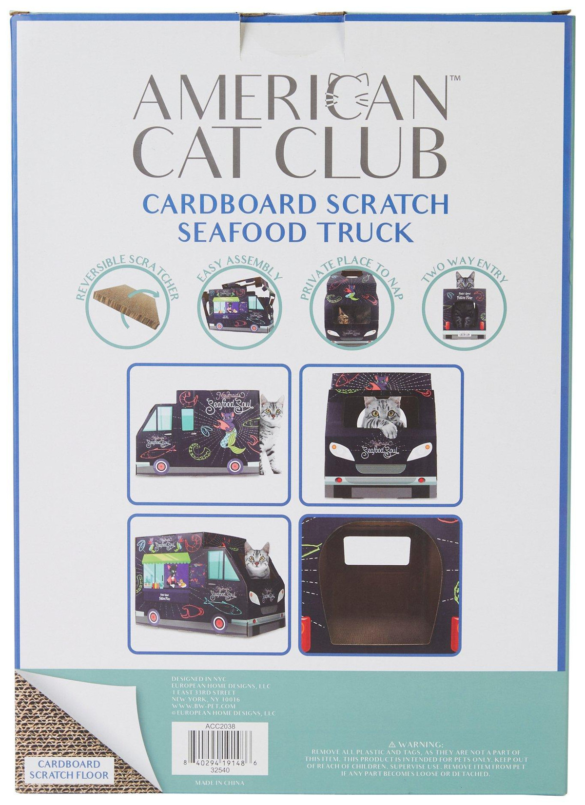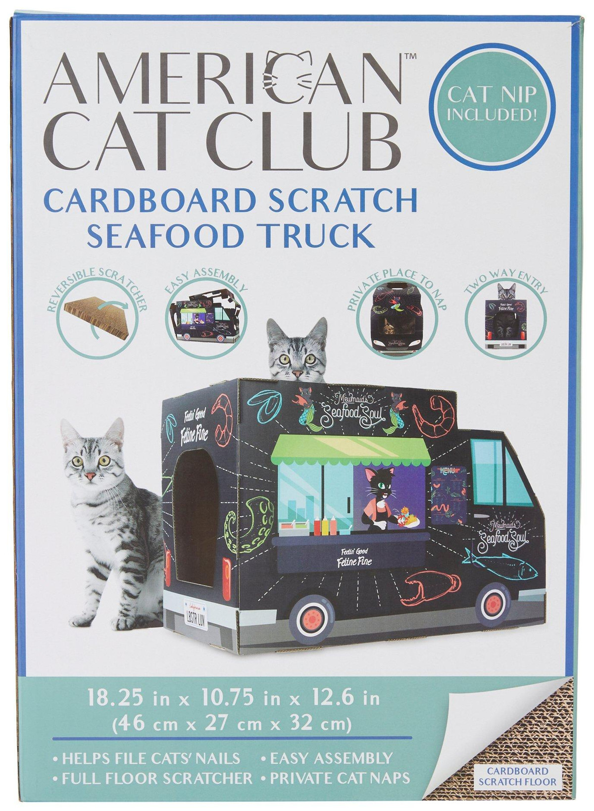 Add playful style to your cats routine with the Cardboard Scratch House Food Truck. Shaped like a colorful food truck, this cardboard structure includes a full-floor scratcher that helps maintain healthy nails while giving cats a fun, enclosed space to relax. Easy to assemble and lightweight for repositioning. Ideal for indoor use and daily enrichment. Replace scratch insert as needed. Measures approximately 18.25 in x 10.75 in x 12.6 in.