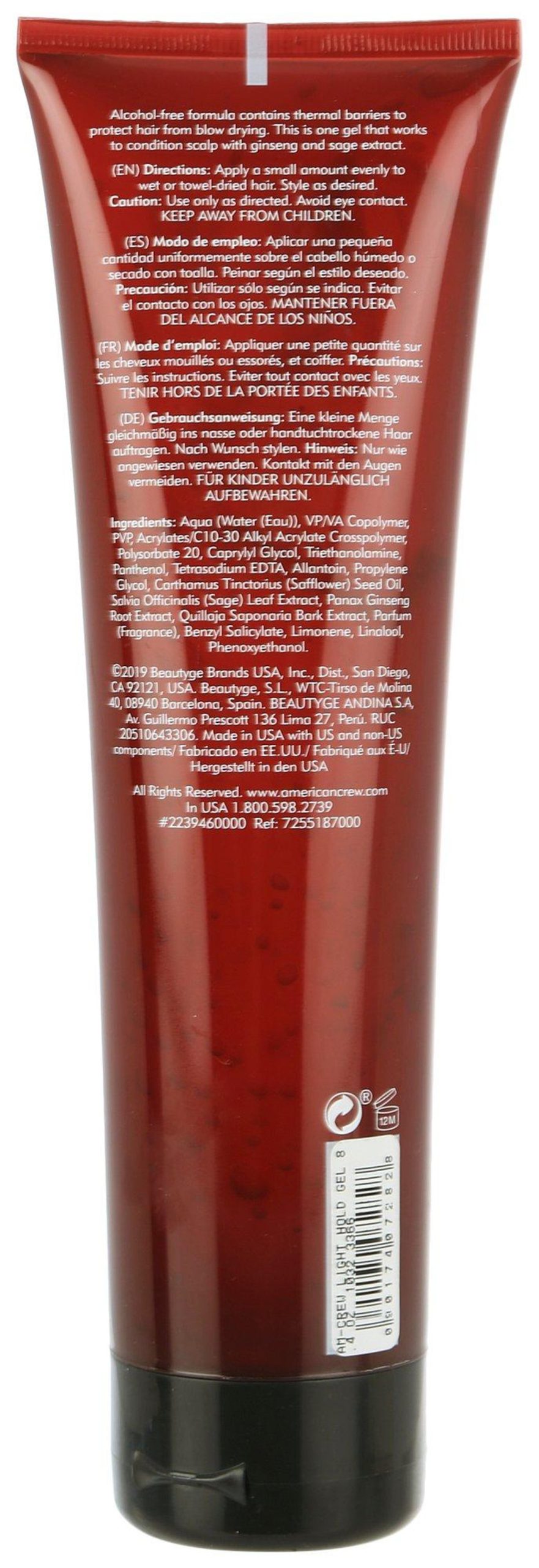 This Light Hold Styling Gel builds thickness and shine while providing light control. Alcohol-free, flake-free formula will not dry the scalp. Protects hair from environmental stress, blow drying, and other heat treatments. Conditions scalp with ginseng and sage extract. Contains 8.4 fl.oz.