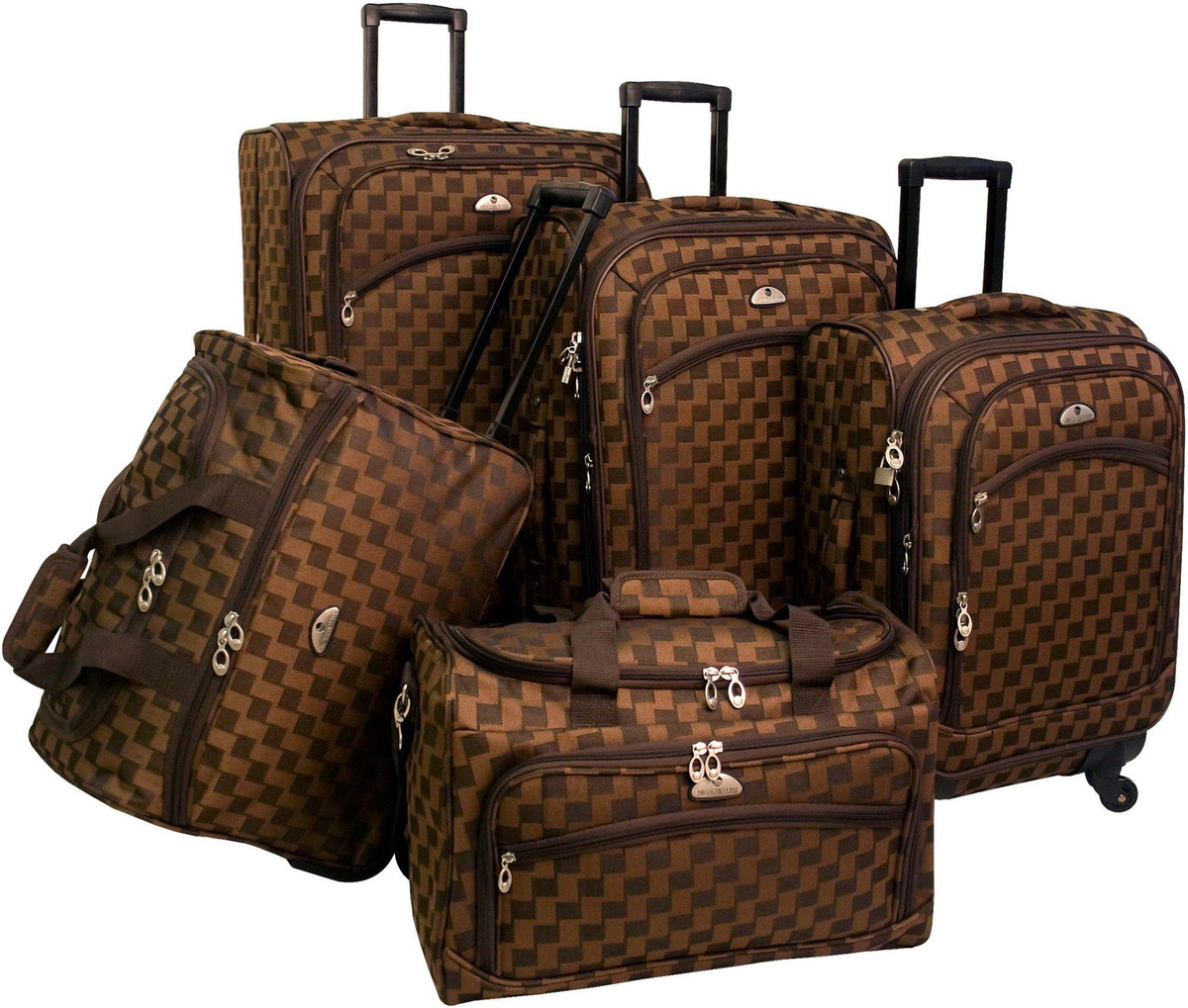 American Flyer Madrid Spinner Luggage Set includes 28”, 24”, & 20” spinner uprights as well as wheeled duffel (19” x 10”x 12′) & personal bag (18”). Suitcase uprights feature 4 spinner wheels, recessed telescoping handle, self-mending zippers, and top & side handle.
