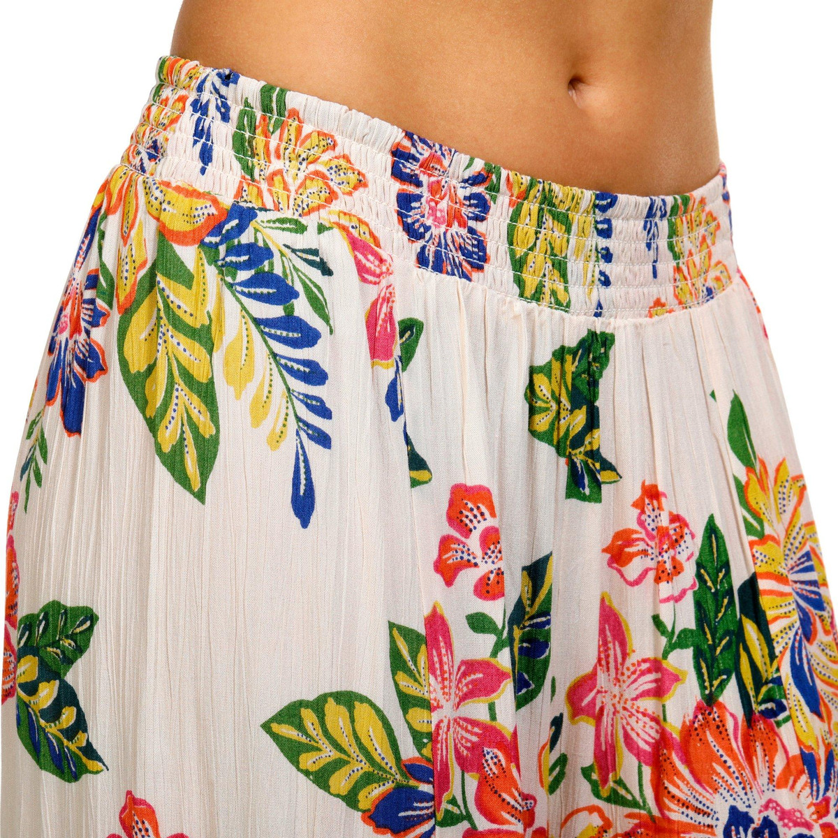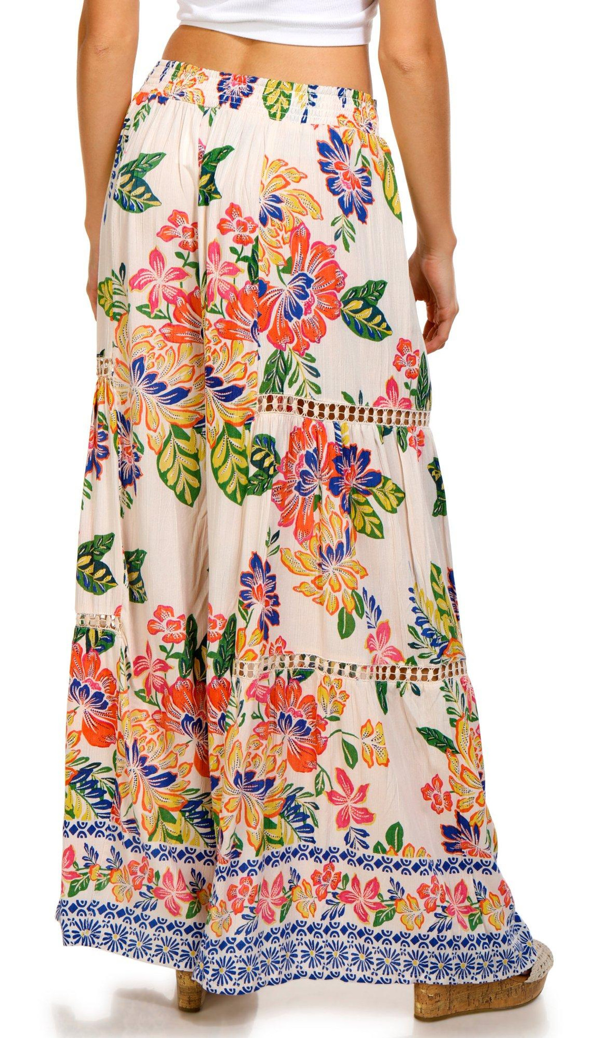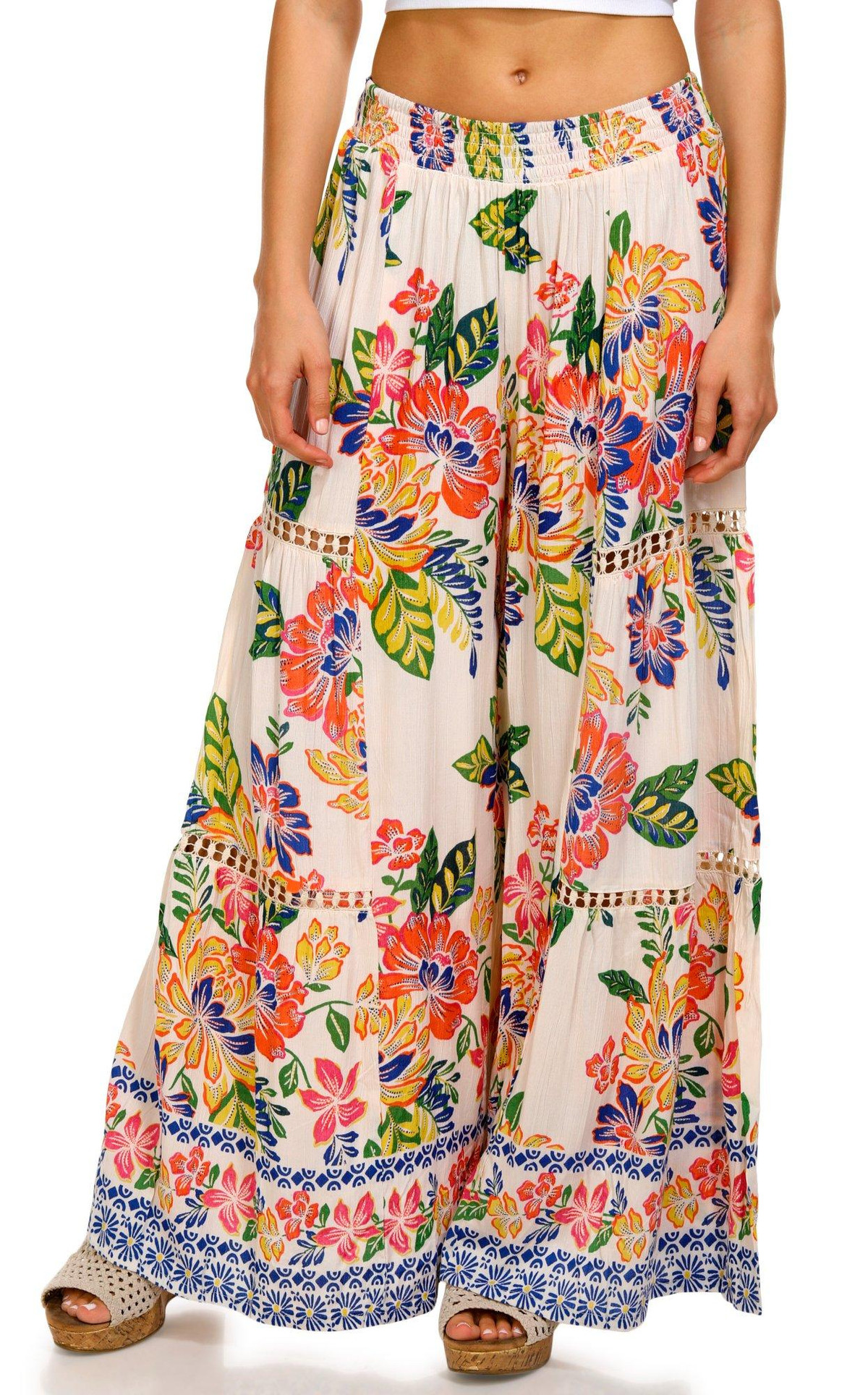 Introducing the Juniors Floral Border Print Pants, crafted from 100% rayon for a lightweight and comfortable fit. These stylish pants feature a pull-on waistband for easy wear and a wide-leg fit that offers both elegance and freedom of movement. The vibrant floral border design adds a touch of sophistication, making these pants perfect for any casual or semi-formal occasion. Embrace effortless style with this versatile piece.
