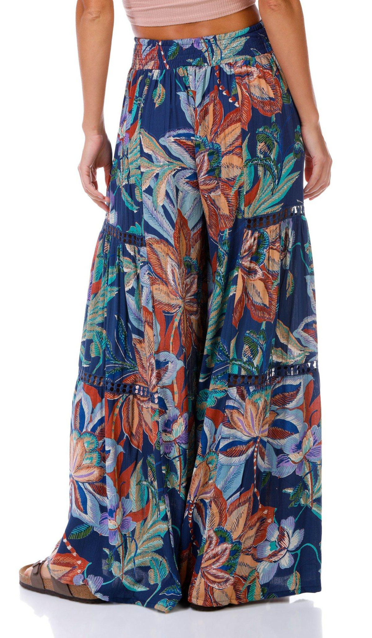 Introducing the Juniors Smocked Floral Crochet Pants, crafted from 100% rayon for a lightweight and comfortable fit. These stylish pants feature a smocked, pull-on waistband for easy wear, wide-leg fit that offers both elegance and freedom of movement and open crochet detail. The vibrant floral border design adds a touch of sophistication, making these pants perfect for any casual or semi-formal occasion.