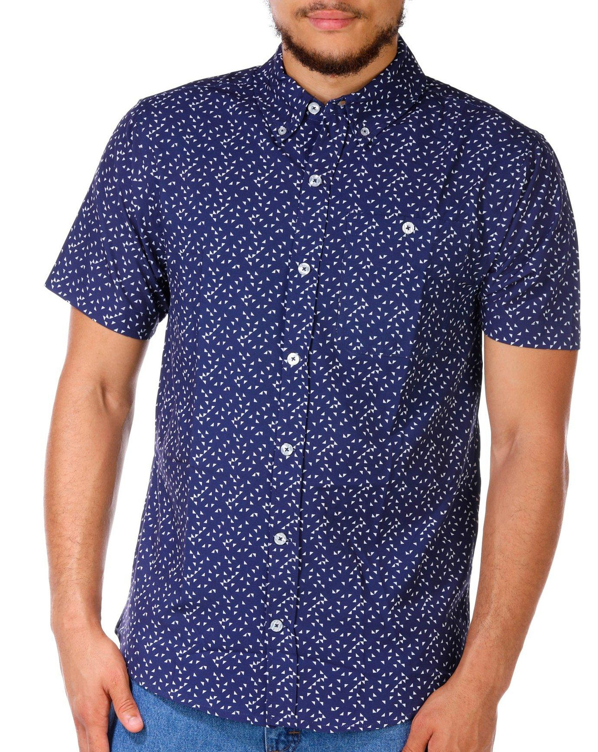 Breathe easy in our Men’s Short Sleeve Mini Triangles Button Down Shirt. Featuring a subtle allover triangle print, classic collar, and lightweight, breathable fabric, it is perfect for warm days and casual style with a modern twist. Fabrication 90% polyester, 10% spandex