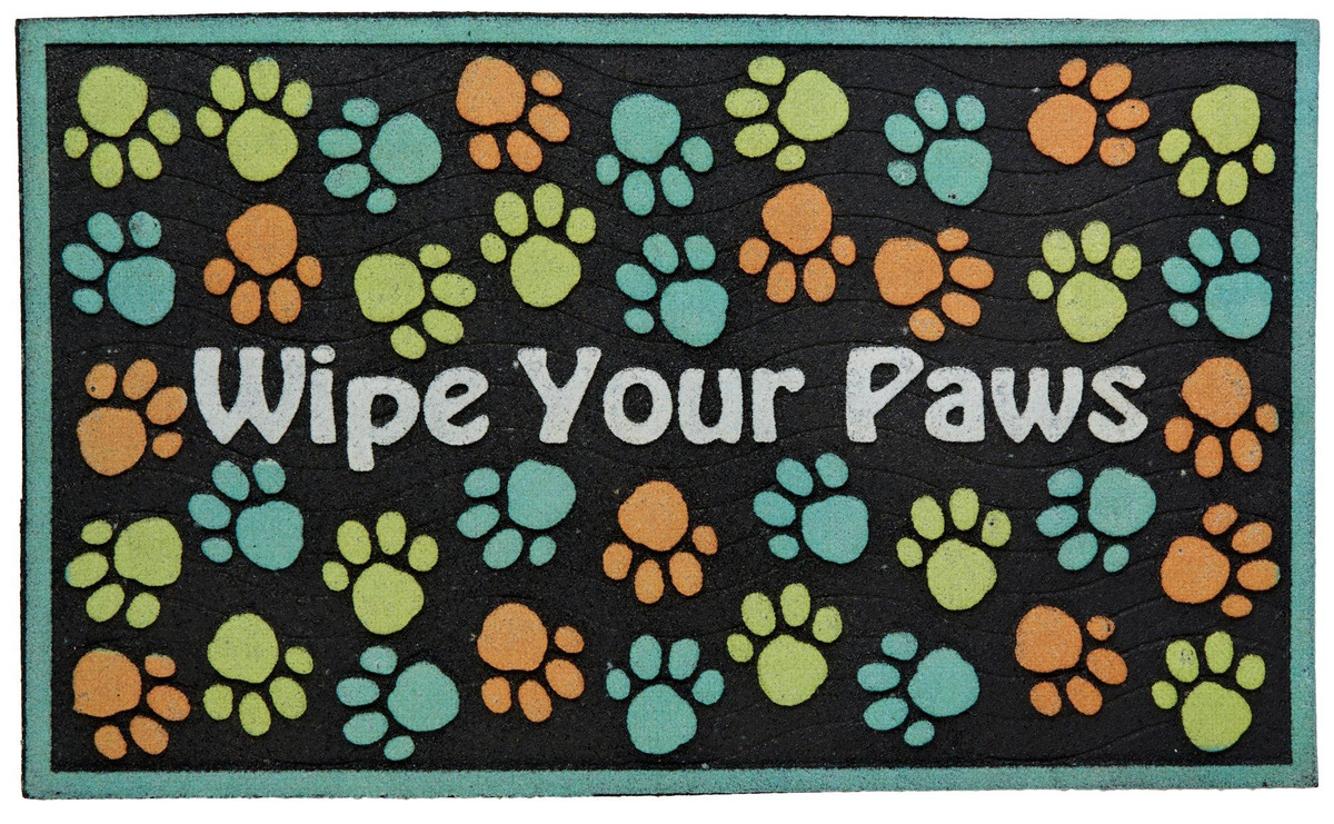 This Apache Mills Wipe Your Paws Outdoor EcoMat features the text Wipe Your Paws in a multi-level design that resists stains, traps dirt, and has a durable recycled rubber backing to prevent slipping. Shake, sweep or hose off to clean. Rug measures 18”L x 30”W.