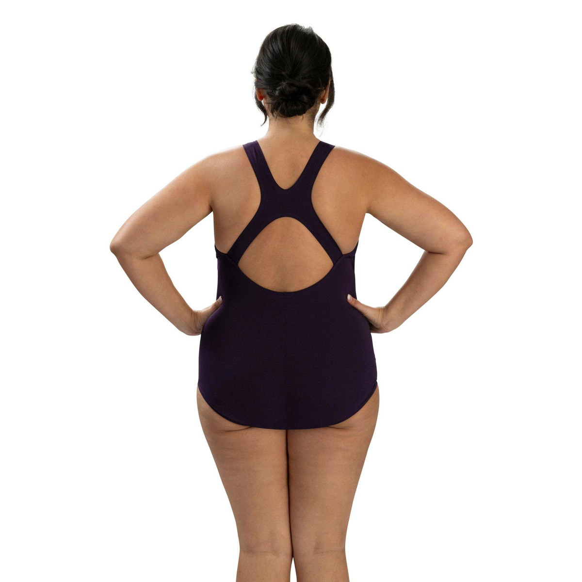 Power through your swim with this performance-ready one-piece! Made from 100% polyester, it is chlorine-resistant, quick-drying, and built for action with UPF 50+ sun protection. The scoop neck and sleeveless cut allow full range of motion, while a built-in shelf bra and modest leg cut deliver support and coverage, perfect for training or outdoor adventures.