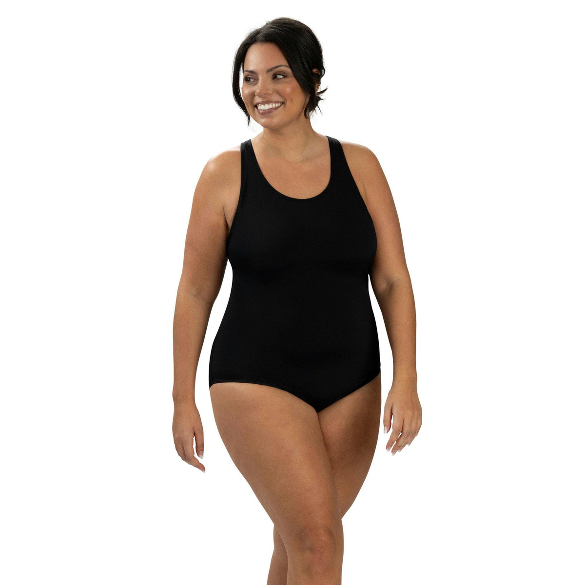 Ready for sun and swim? This comfy one-piece has you covered! Made from quick-dry polyester, it is chlorine-resistant with UPF 50+ protection. The scoop neck and back keep things easy, while the modest leg cut and shelf bra offer support and coverage. Dive in and make a splash. Your new favorite suit is waiting!