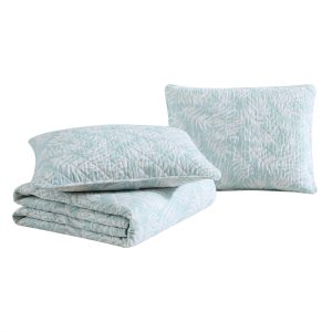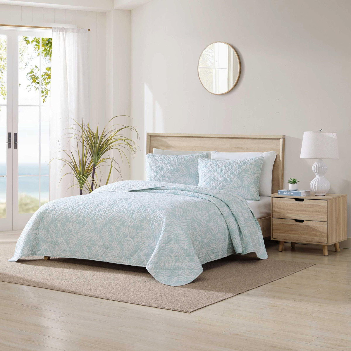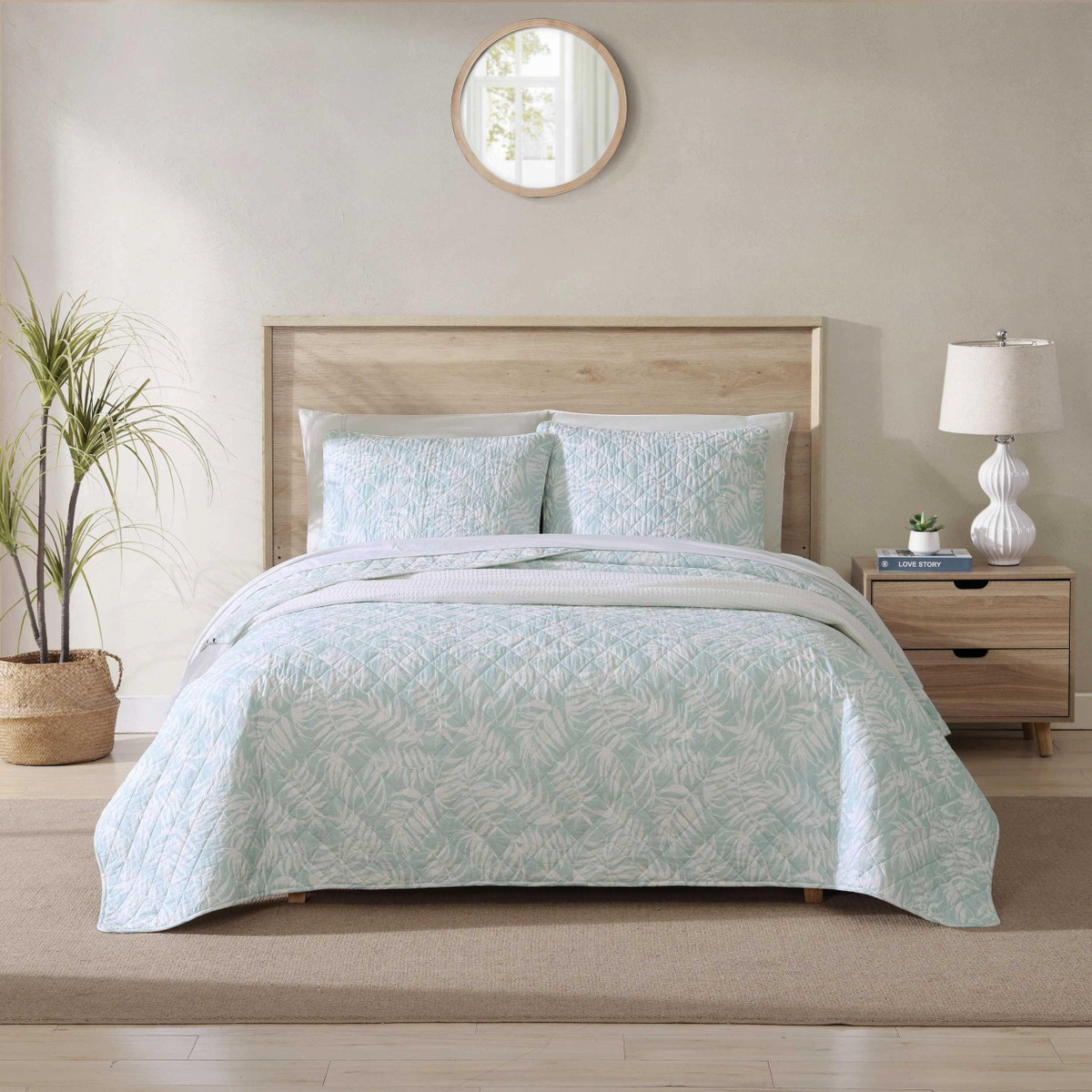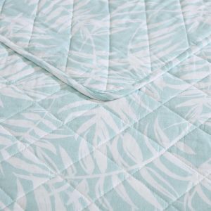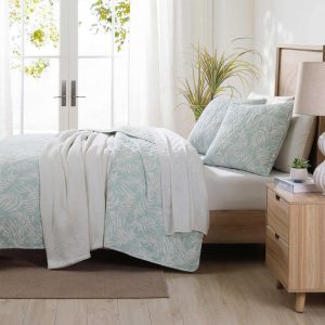 Add a breathable, fresh layer to your bedding ensemble with a coastal inspired Art of Palms Tommy Bahama Quilt and Sham Set. This coastal leaf inspired print combines a vibrant essence of color with the serene and calming elements of coastal living. This quilt is 100% cotton, lightweight and easy to layer. Quilt set is fully reversible. Machine washable for easy care.