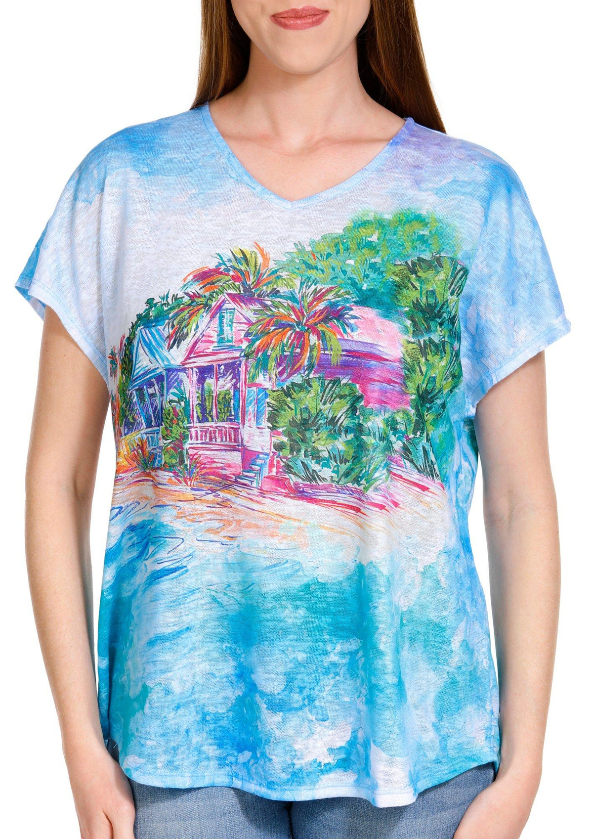 Capture the essence of island life with the Short Sleeve Dolman Top. Crafted from breathable mesh fabric, this top features a vibrant Key West print that brings a touch of tropical paradise to your wardrobe. The dolman sleeves offer a relaxed and stylish fit, perfect for casual outings or beachside strolls.