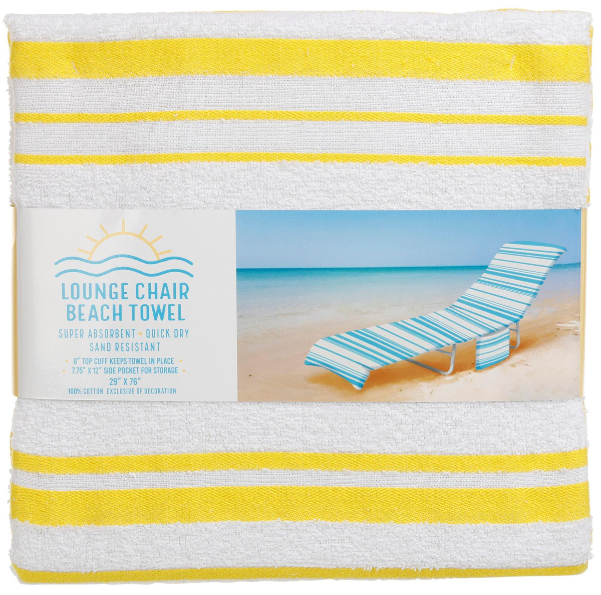 Relax in style with this 100% cotton lounge chair towelsuper absorbent, quick-drying, and sand-resistant. Sized at 29 x 76, it features a 6 top cuff to stay securely in place and a 7.25 x 12 side pocket for convenient storage. Perfect for sunny, carefree days by the water.