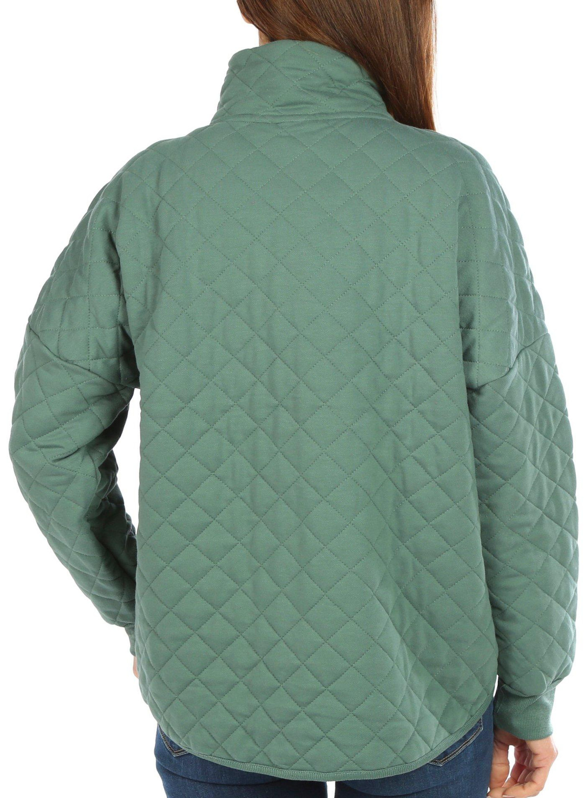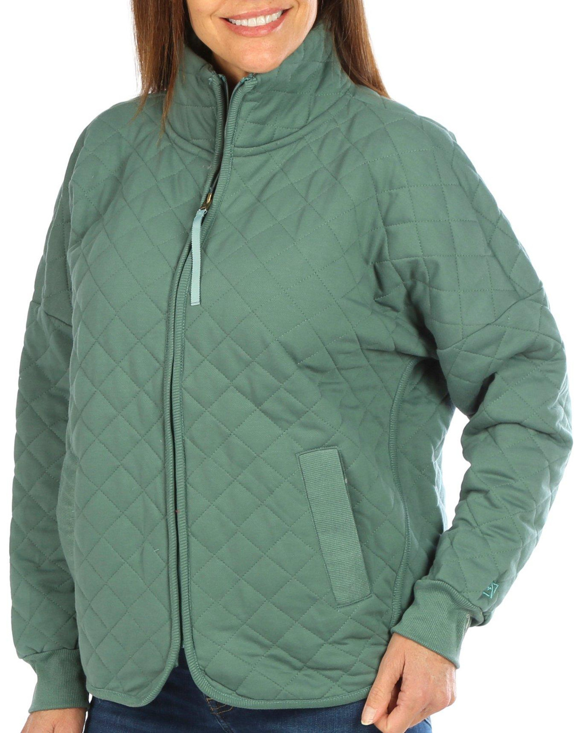 This medium-weight knit jacket features a solid color design on soft quilted fabric, front full zipper closure, two front slash hand pockets, mock collar, and a modern classic fit. The top length measures approximately 26 in.