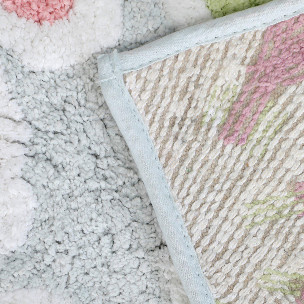 Transform your bathroom into a cozy retreat with a plush bath rug featuring an abstract design that complements any decor. Made for comfort, it offers a soft, luxurious feel underfoot. The absorbent material dries quickly, while the non-slip backing helps keep it securely in place. Fabrication is 100% cotton pile. Measures approximately 20 in x 30 in.