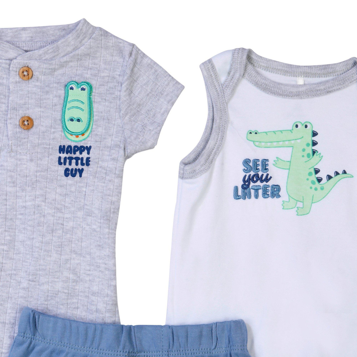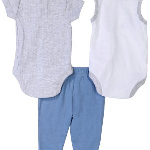 This three piece baby boy set includes a soft romper, cozy pants, and a matching accessory for a complete look. Designed for comfort and style, the breathable fabric keeps baby happy all day. Perfect for playtime or outings, this set makes dressing easy and adorable.