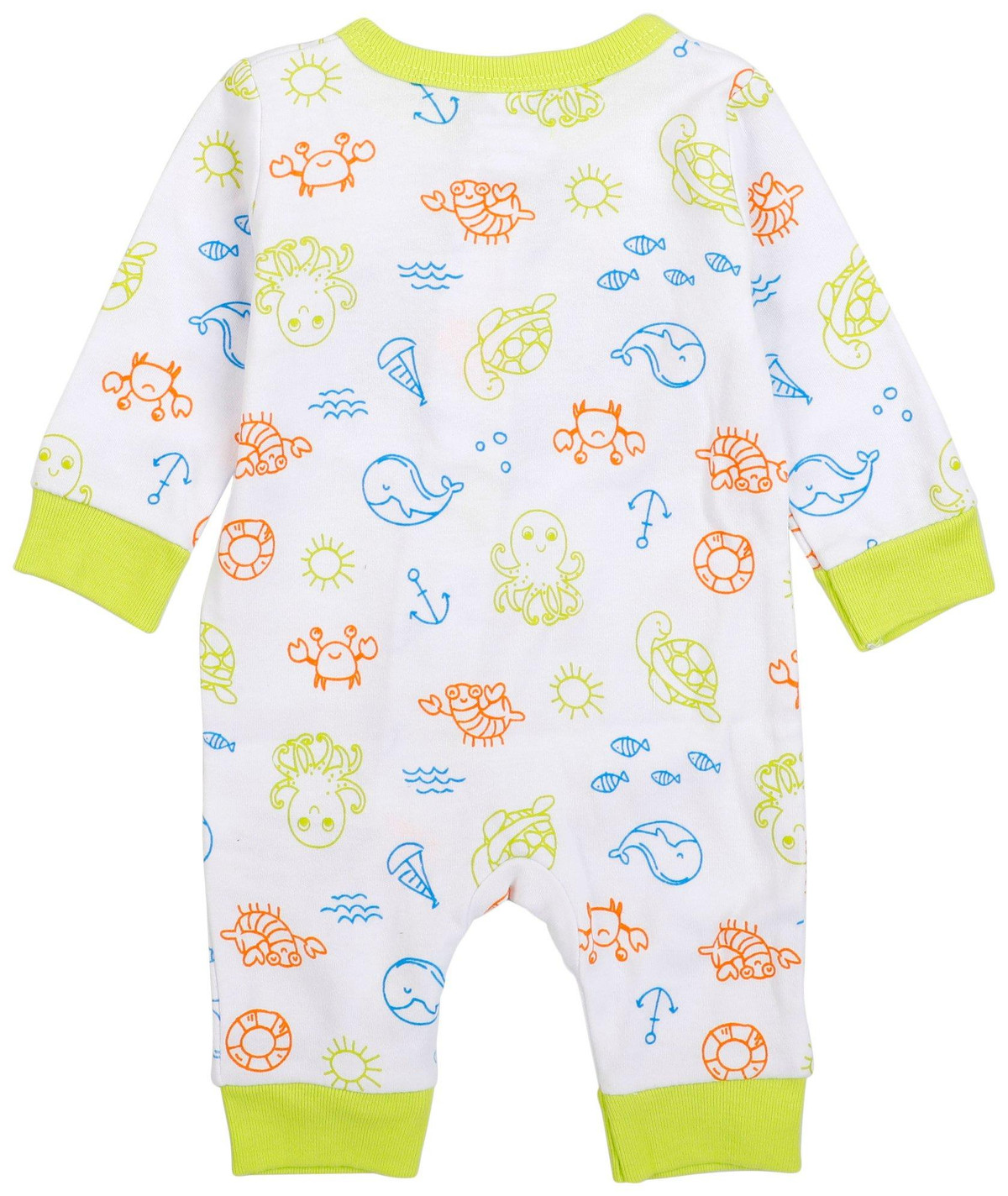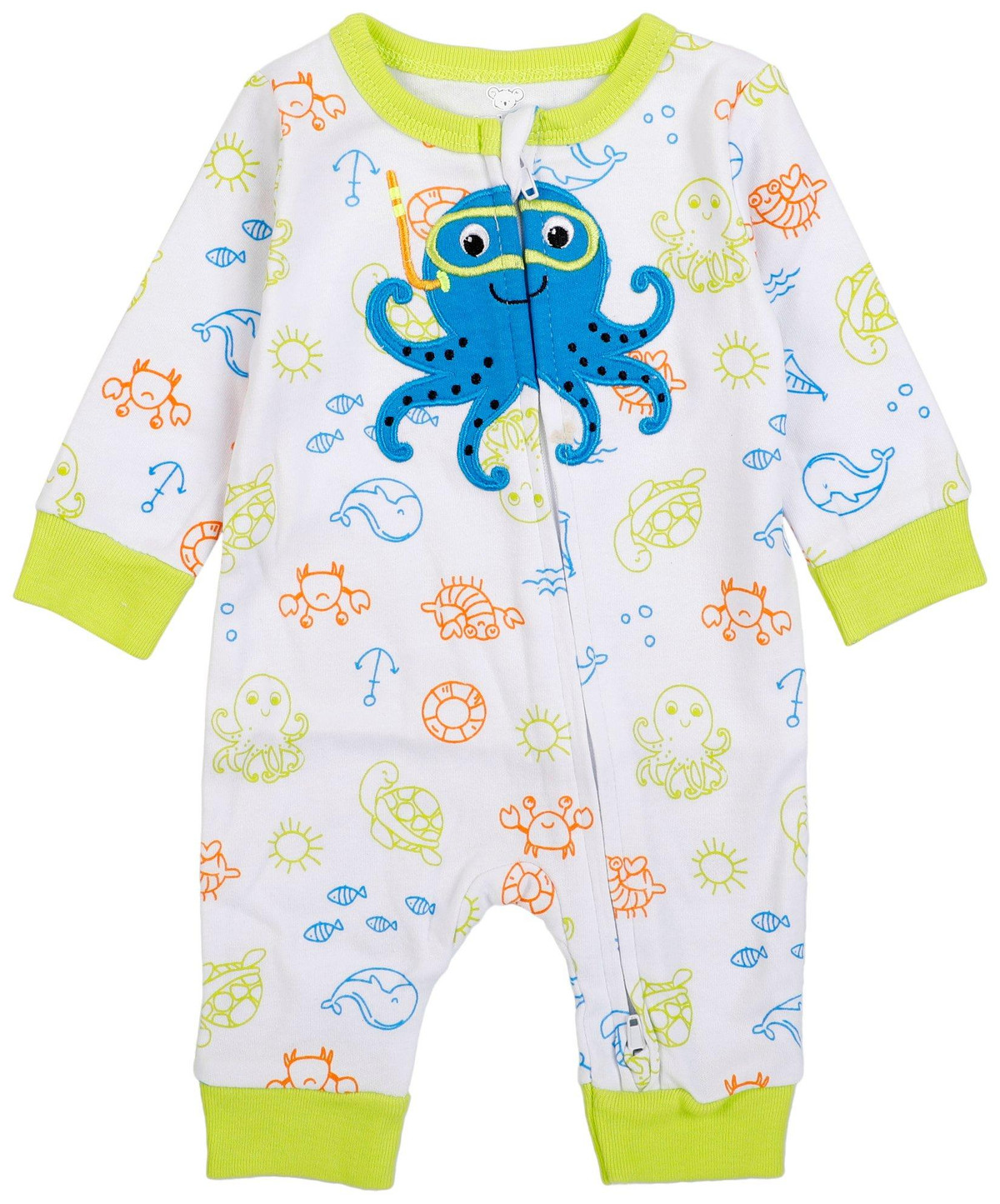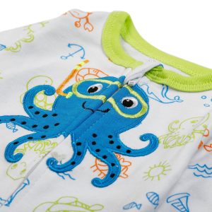 Wrap your little one in cozy comfort with our baby boys long sleeve sleeper. Featuring a footless design and a convenient full front zip closure, this sleeper is perfect for easy changes. The adorable all-over ocean pattern adds a playful touch, while the soft cotton knit ensures ultimate comfort and breathability. Ideal for both sleep and play, this sleeper is a must-have for your baby’s wardrobe. Fabrication is: 100% cotton.