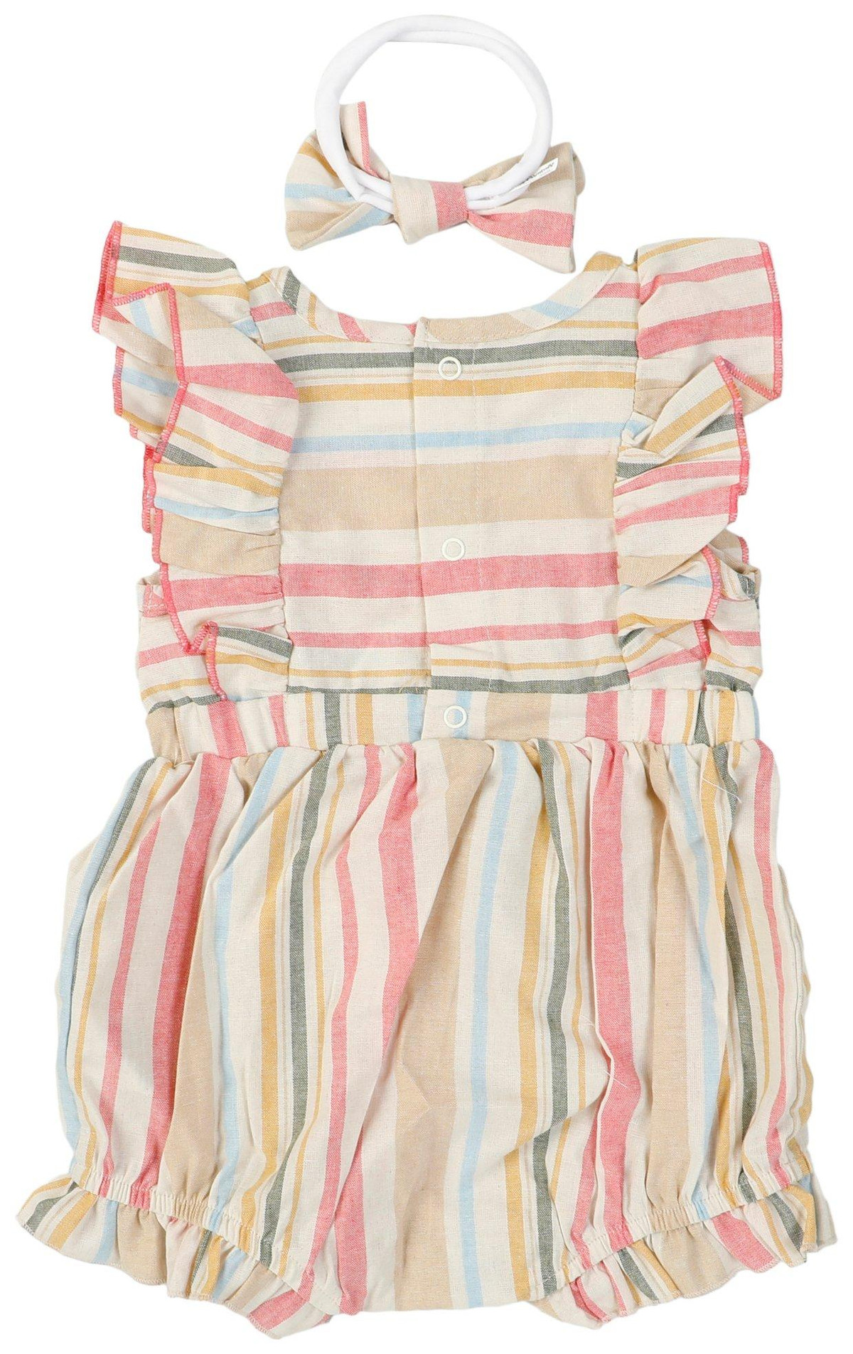Sunny days call for sweet style! This 2-piece set features a striped sleeveless romper with a comfy fit and playful charm, paired with a matching headband for the perfect finishing touch. Soft, breathable fabric keeps your little one cool and cozy, making it a go-to outfit for warm-weather adventures.