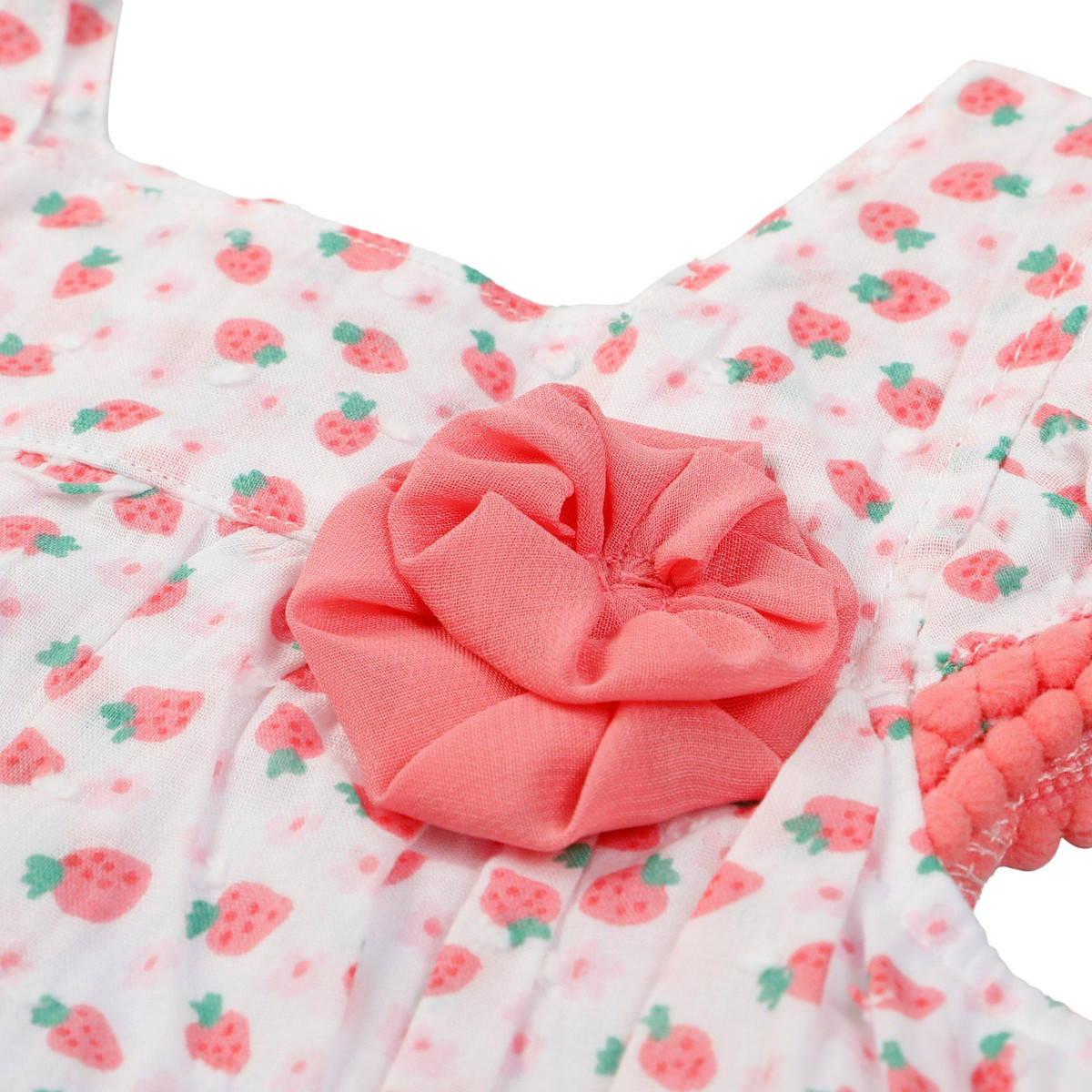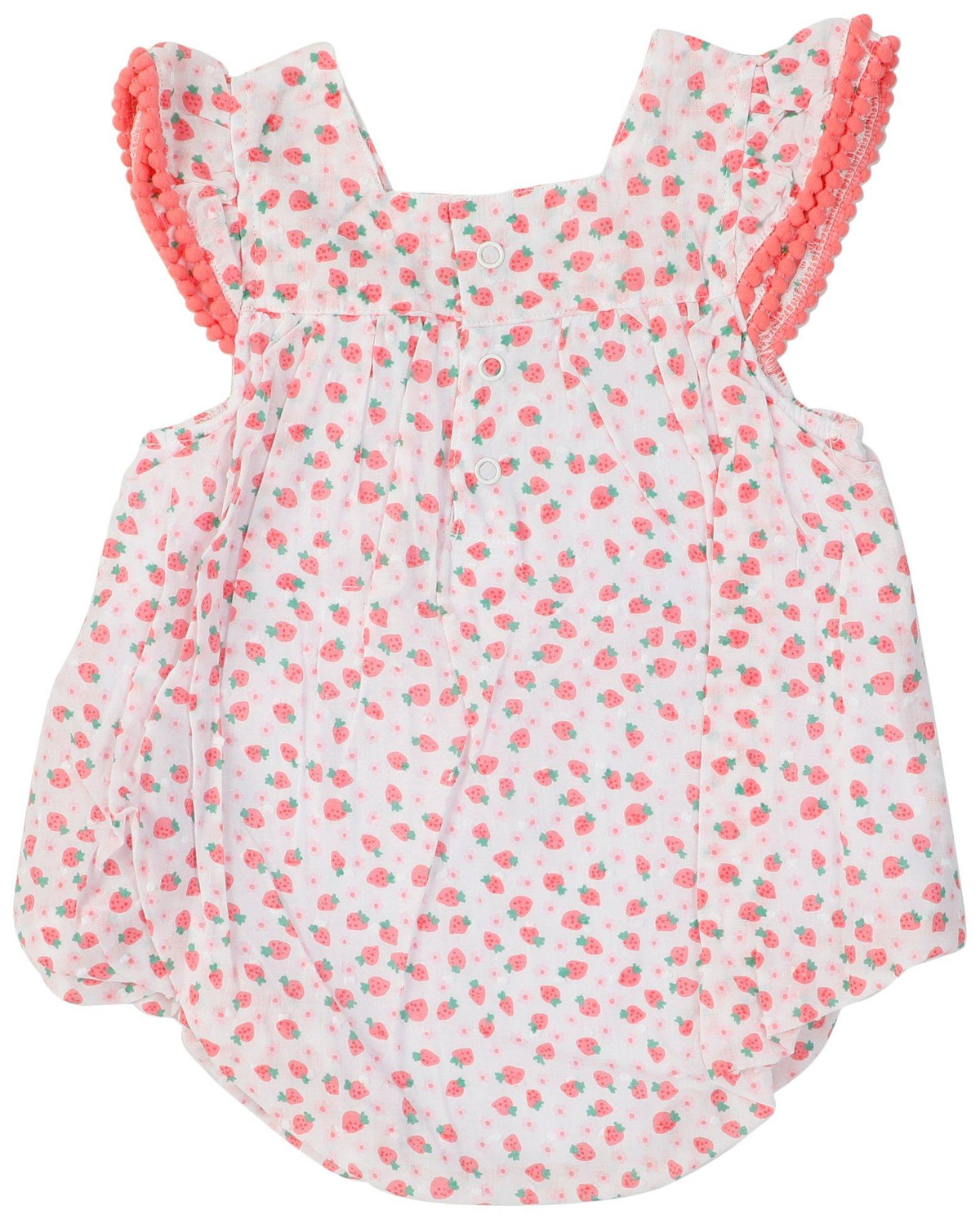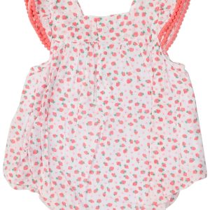 Berry sweet and ready for play, this sleeveless strawberry romper is bursting with charm! Made from soft, breathable fabric and featuring a snap button bottom for easy changes, its perfect for sunny days and sweet adventures.
