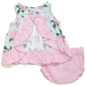 This footed sleeper from Little Me is a cute and cozy piece for your baby girl! It features a stylish polka dot print, a full front snap button closure, an embroidered ballerina slipper design and a matching hat. Fabrication is 100% cotton.