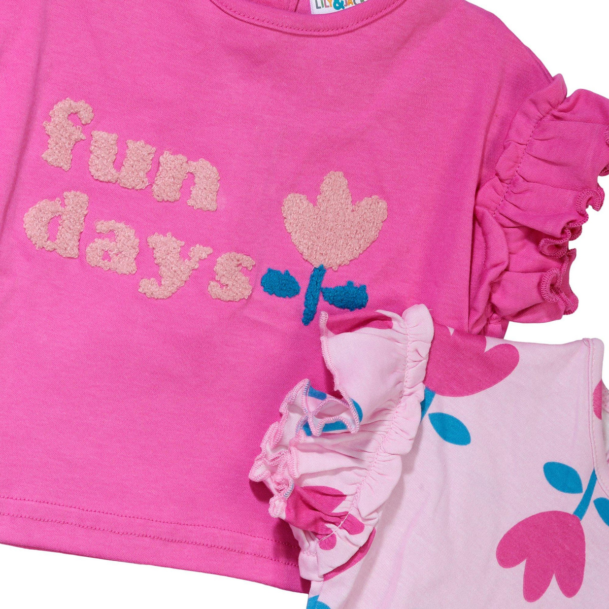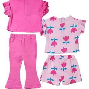 This Lily & Jack 4-piece set is a stylish and playful outfit for your little one. It includes two short sleeve tops with charming ruffle sleeves and two pairs of flared pants for a trendy look. Made from soft, breathable fabric, each piece is designed for comfort and easy movement. Perfect for mixing and matching, this set adds fun flair to everyday wear.
