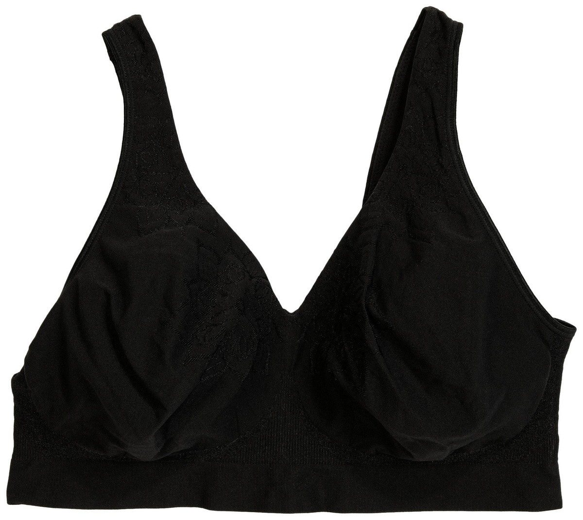 Comfort Revolution Sure Size Wirefree Bra by Bali has four easy sizes, all with great support featuring stay in place straps and back. Unique fabric and design offer flexibility for a perfect fit every time. S=36C&D/M=38D&DD/L=40D&DD/XL=42D&DD. Style 3484