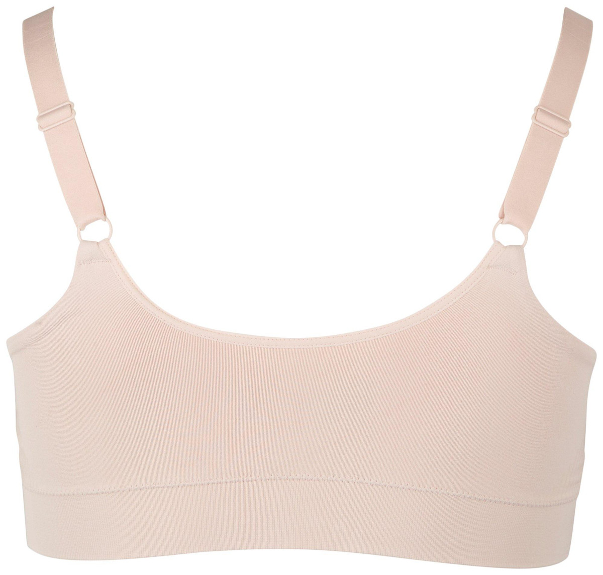 Smooth, soft, and comfy, this wireless bralette features a solid color design on a super-soft moisture-wicking nylon blend fabric to keep you cool and comfortable, pullover styling for easy on and off, seamless construction, and adjustable straps. Fabrication 92% nylon, 8% spandex. Style DFMSBR.
