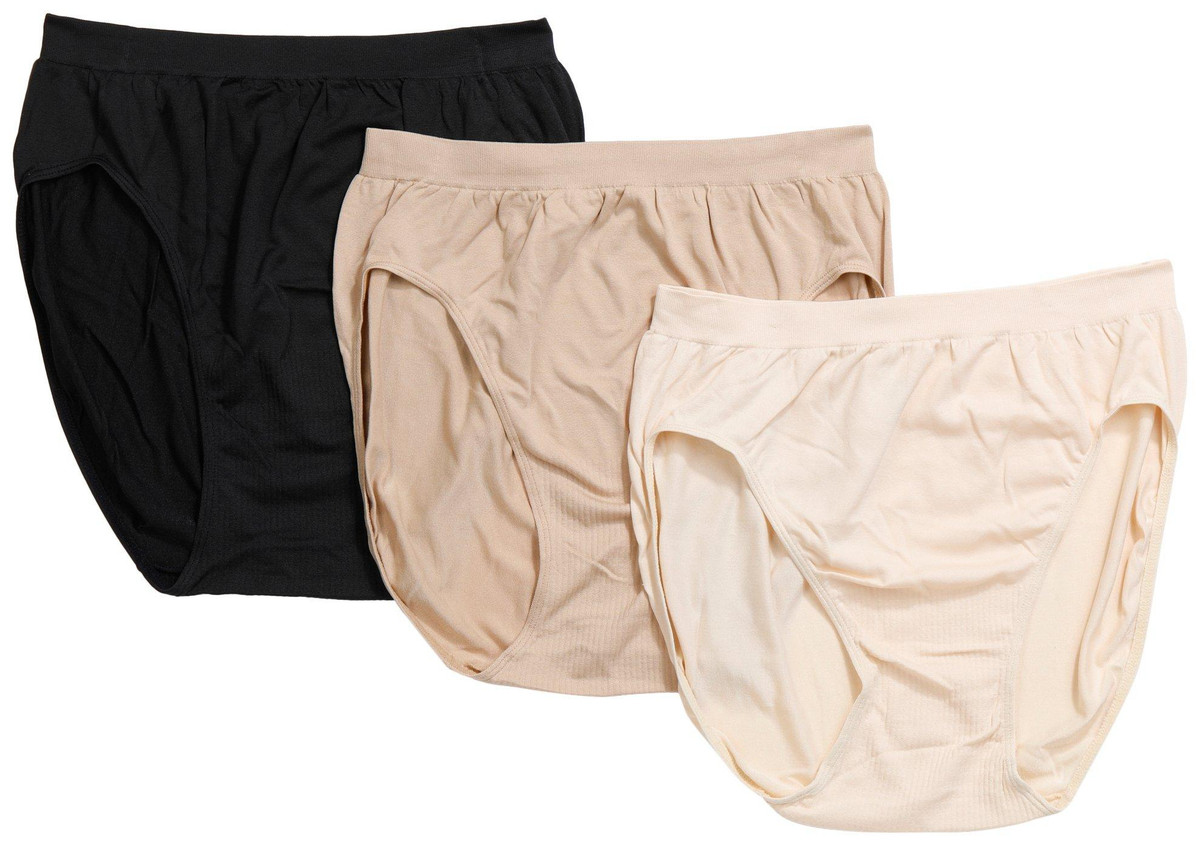 With a no-ride up design, the Comfort Revolution Hi-Cut Panties are made for the women on the go. Designed with Cool Comfort moisture-wicking nylon fabric, this womens panty will keep you comfortable all day long. The high-cut, seamless panty features a tag-free design that wont chafe or dig. Narrow leg bands and a knit-in waistband help minimize panty lines for a smooth finish.