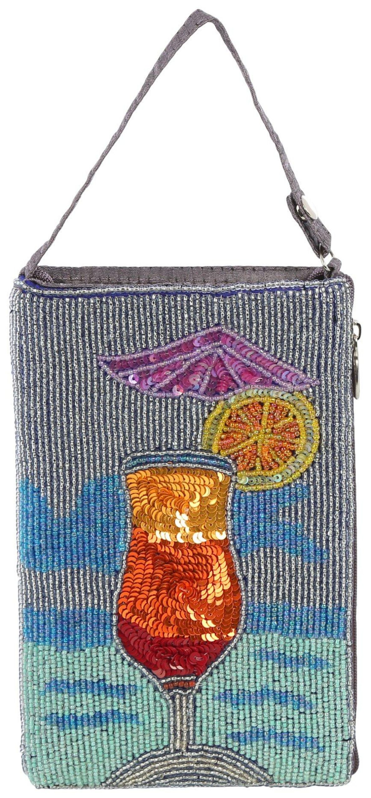 Keep your valuables nearby and stylish in this colorful wristlet! It features a bright design composed of colorful beads, wristlet strap and cord shoulder strap, a fully zipped top, and a slip main compartment. Measures approximately 5 in x 8 in.