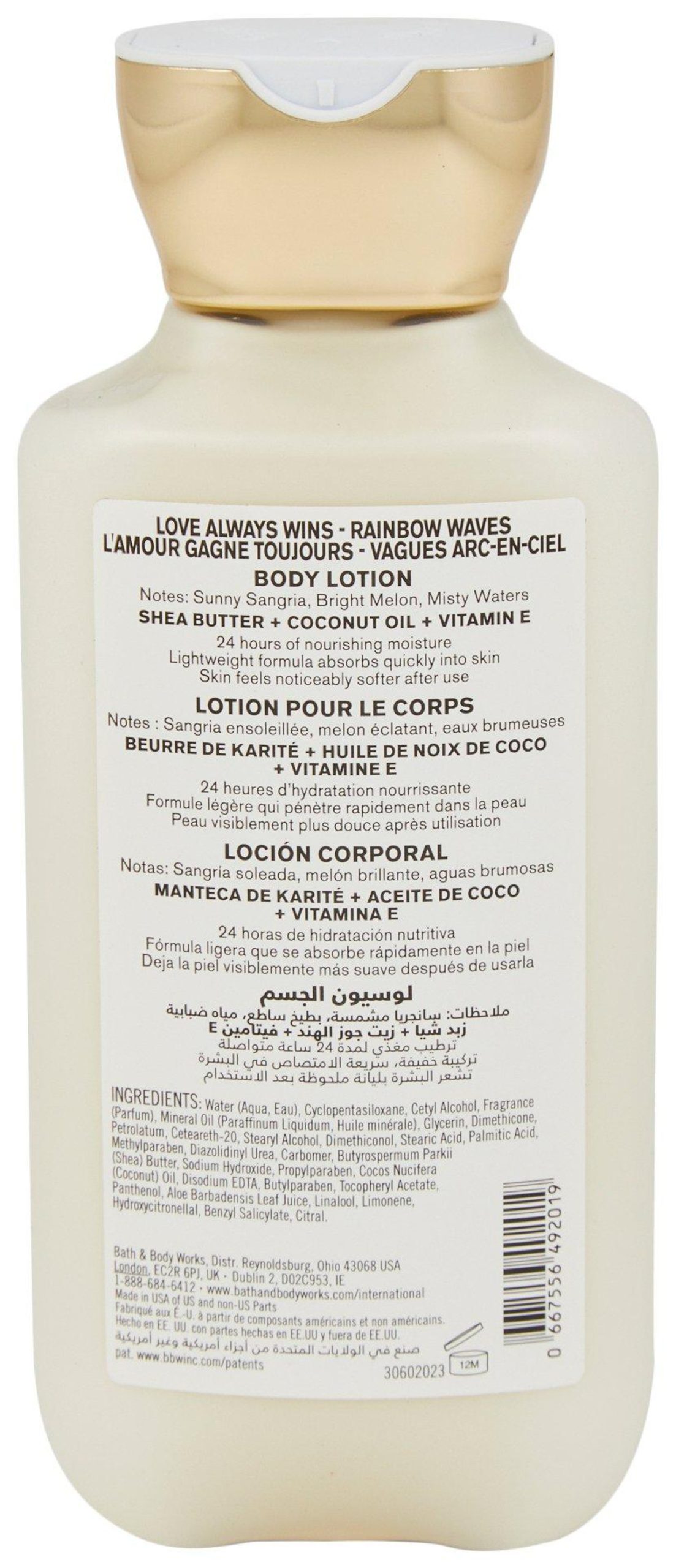 Elevate skin hydration with a 24-Hour Moisture Body Lotion featuring the vibrant scent of sangria, bright melon and misty waters. Enriched with shea butter, coconut oil and vitaminE, it deeply nourishes while absorbing quickly for a smooth, dewy finish. Fragrance delivers a fresh, unisex vibe that lingers subtly throughout the day. Ideal for daily use at home or keeping skin soft on a warm evening out. Contains 8 fl oz.