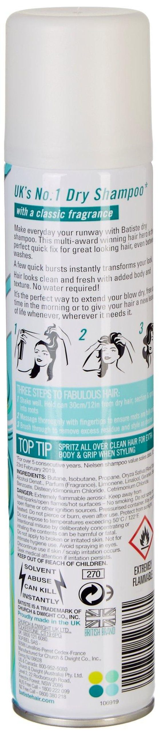 Batiste Original Dry Shampoo is the perfect quick fix for great looking hair, even between washes. 6.73 fl oz.
